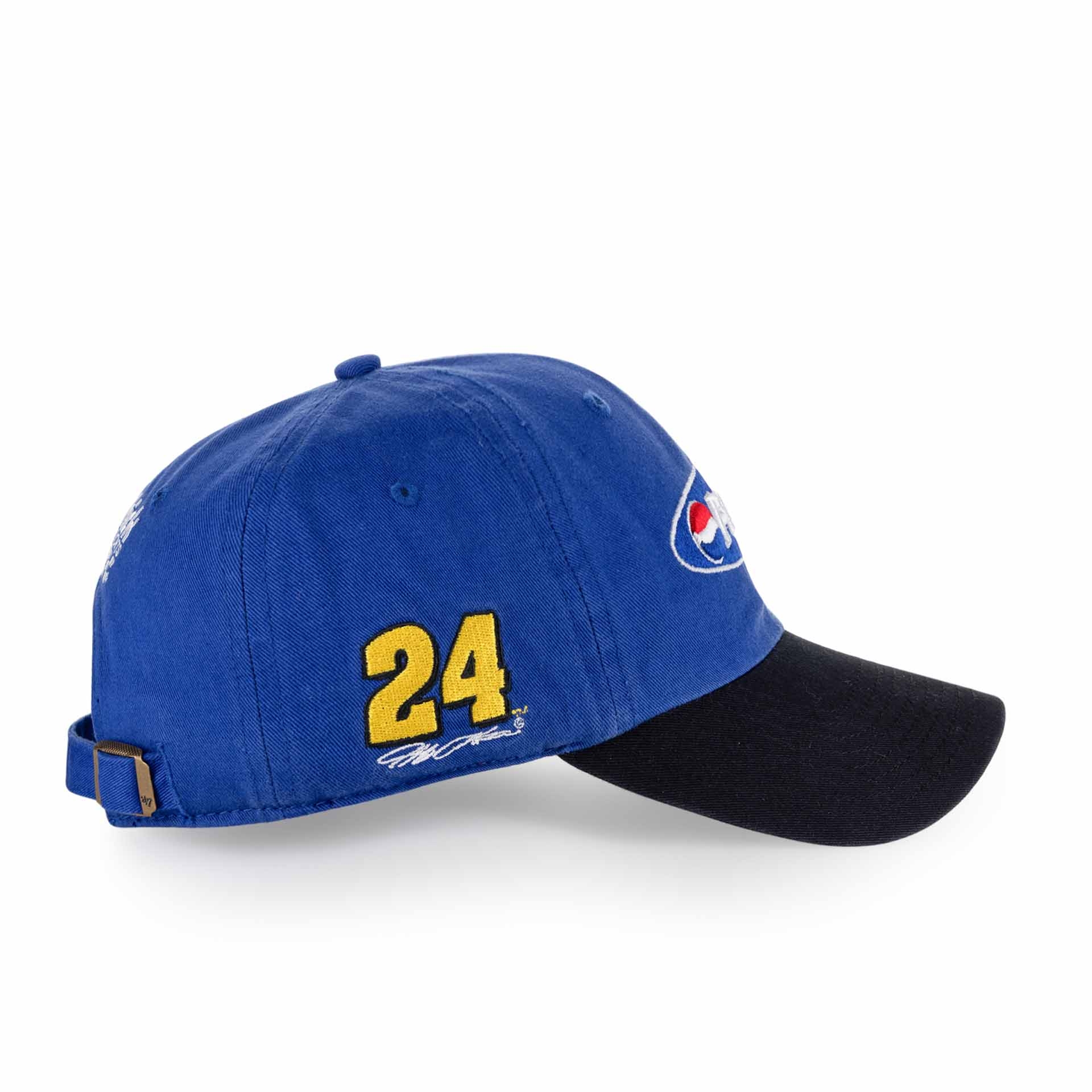 Die Clean Up Cap von '47 Brand im Design von Hendrick Motorsports verbindet klassischen Motorsport-Style mit einem lässigen Look für den Alltag. Auf der Vorderseite ist das Pepsi Logo gestickt, ergänzt durch die Startnummer 24 als Stickerei an der Seite, die besonders in Verbindung mit dem Pepsi Design zu den prägenden Motiven in der NASCAR gehört, sowie den Hendrick Motorsports Schriftzug auf der Rückseite, die das Design komplettieren.