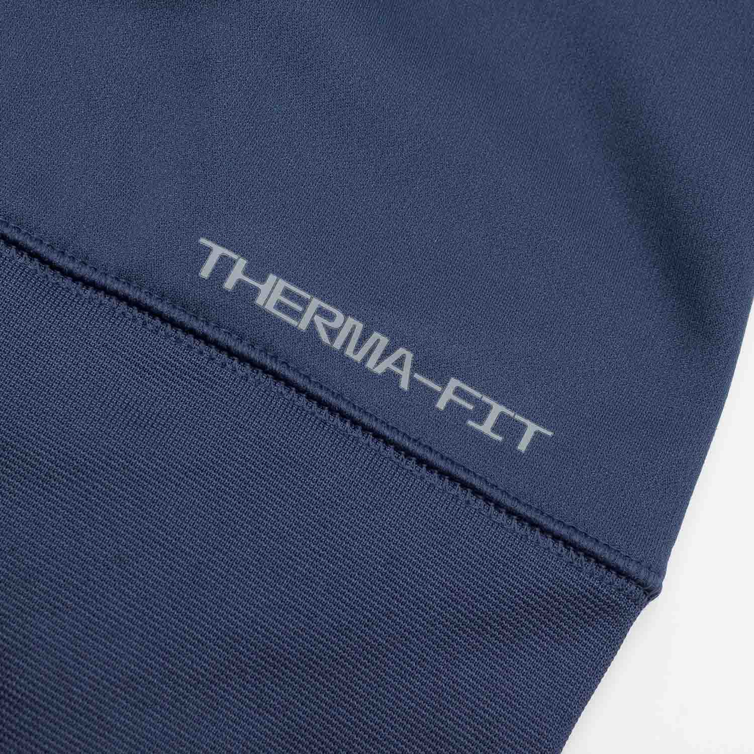 MATERIAL: 100% Polyester (Hauptmaterial); 98% Polyester und 2% Elasthan (Rippband). 250 g/m² Nike Therma Dri-FIT; 60% recyceltes Material.