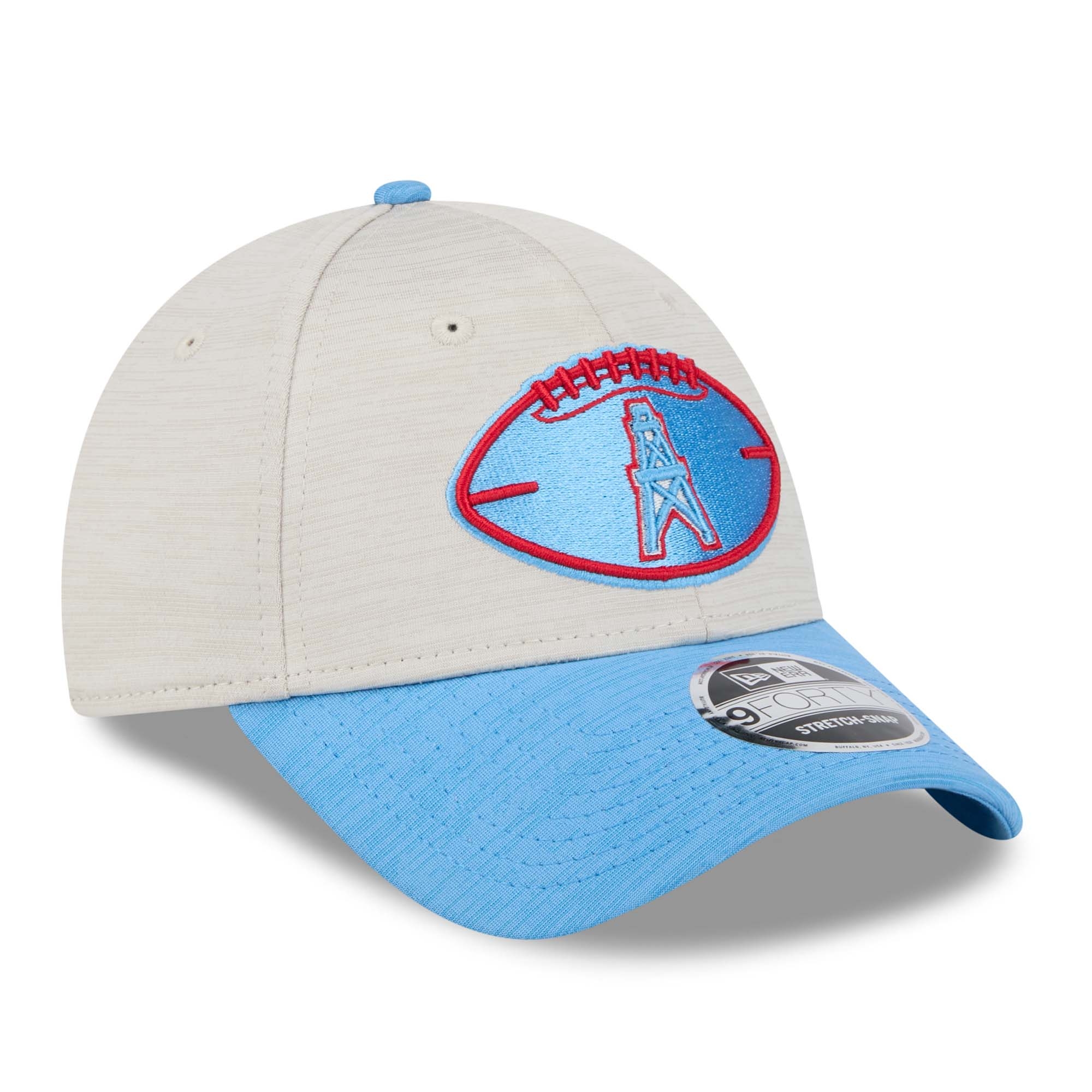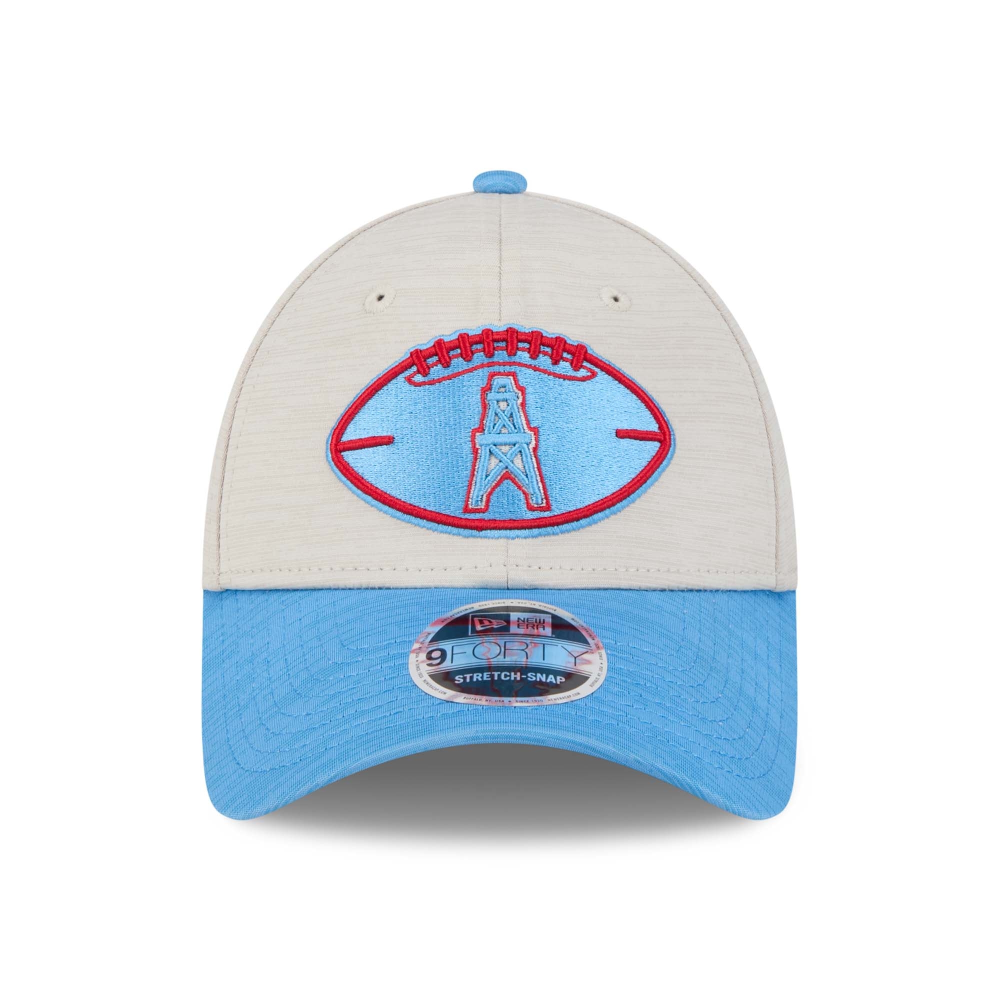 New Era American Football Stretch-Snap Cap von deinen Houston Oilers im 9FORTY Style aus der klassischen Throwback 2024 NFL On-Field Sideline Kollektion.
