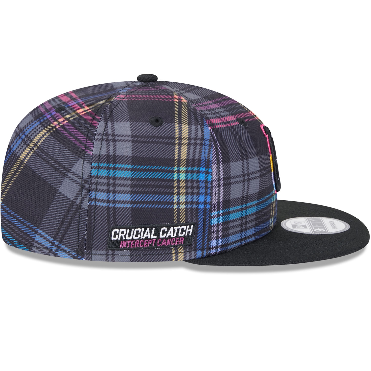 Unterstütze den weltweiten Kampf gegen Krebs mit der offiziellen New Era 2024 NFL Crucial Catch On-Field Kappe. Diese NFL Cap mit verstellbarem Verschluss wird während der 2024-25 Crucial Catch Kampagne im Oktober an den NFL-Seitenlinien getragen. Die Cap ist auf der Vorderseite hochwertig mit dem bunt abgesetzten Indianapolis Colts Teamlogo bestickt. Die rechte Capseite ist mit dem CRUCIAL CATCH - INTERCEPT CANCER Patch bestickt. Die Rückseite ziert das aufgestickte NFL Logo. Das Sublimierte Karo-Design auf allen sechs Panels in den typischen Crucial Catch Farben sorgt für einen einzigartigen Look.