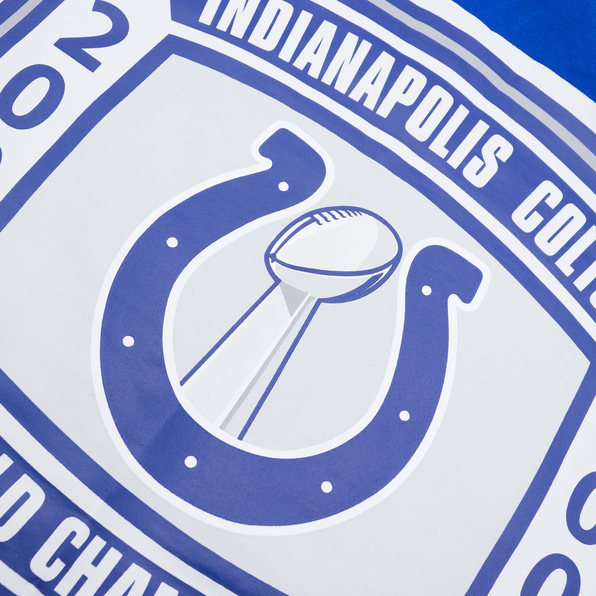 Hochwertiger Mitchell & Ness Premium Throwback Football Pullover im eindeutigen NFL Teamdesign. Die Vorderseite ist mit dem Indianapolis Colts Schriftzug und Team Logo dekoriert und aufgedruckt. Die Rückseite ist mit dem 2006 Super Bowl Champions Logo bedruckt. Passend dazu sind die Ärmel mit den Team & Conference Logo bestickt. Abgerundet wird der Football Look mit den aufgenähten Ärmelstreifen im Trikotdesign und dem Mitchell & Ness Schriftzug am rechten Ärmelende. Das extra weiche Baumwoll-Polyester-Fleece sorgt für ein super angenehmes und warmes Tragegefühl. Das Design ist Alltagstauglich und sorgt für deinen täglichen Football-Style.