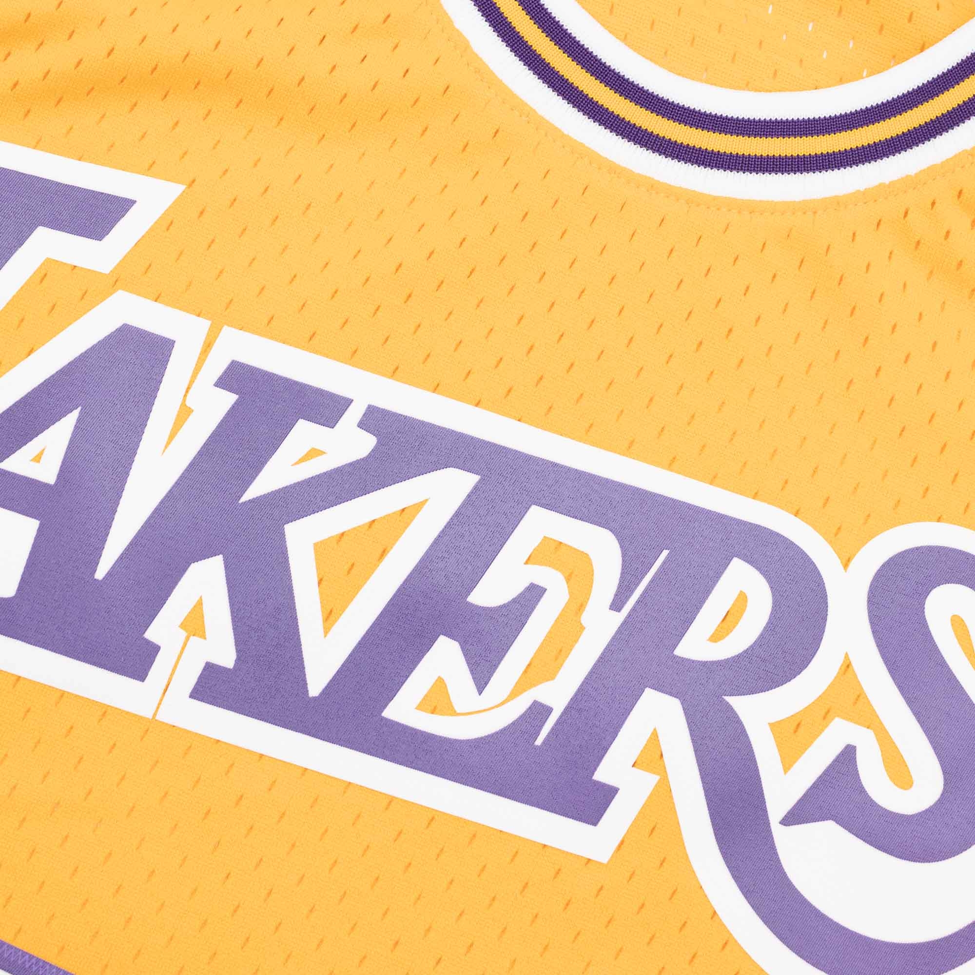 Swingman NBA-Trikot im Design der Los Angeles Lakers aus der Saison 1971-72. Das Trikotdesign entspricht den originalen Trikots der NBA-Profis aus dieser Ära. Alle Logos, Buchstaben und Zahlen sind als hochwertig bedruckter Webepatch im Thermodruckverfahren aufgebracht. Das Mitchell & Ness Hardwood Classics Label am Saum ist ebenso aufgenäht.