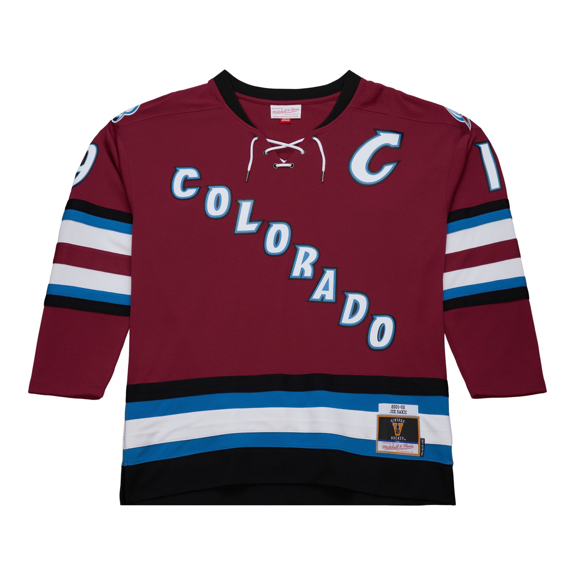 Mitchell & Ness NHL Herren Blue Line Eishockey Trikot von Colorado Avalanche Legende Joe Sakic aus der Saison 2001-02.