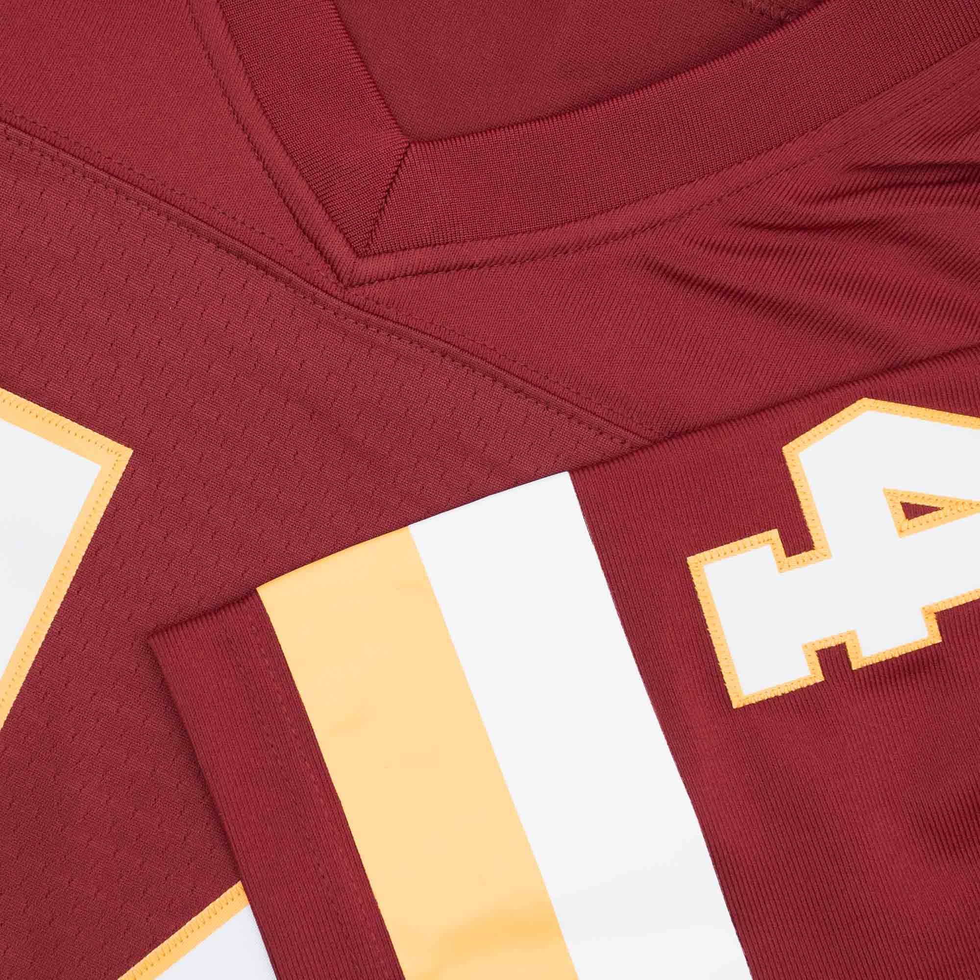 Das Washington Redskins NFL Throwback Trikot besteht zu 100% aus Polyester mit Mesh-Einsatz. Dieses Throwback Trikot im Traditional Fit sitzt etwas weiter an der Taille und den Ärmeln. Die Logos, Zahlen und Buchstaben sind hochwertig aufgestickt und entsprechen dem offiziellen NFL-Design der damaligen Zeit. Die Streifen auf den Ärmeln sind aufgedruckt. Das NFL-Mitchell & Ness Label (Legacy Collection) am Saum aufgenäht.