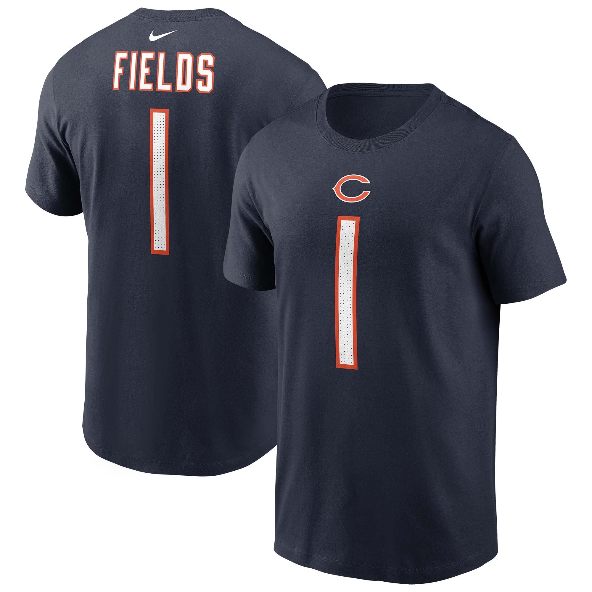 "Justin Fields #1 Chicago Bears Nike Player NFL T-Shirt Navy"