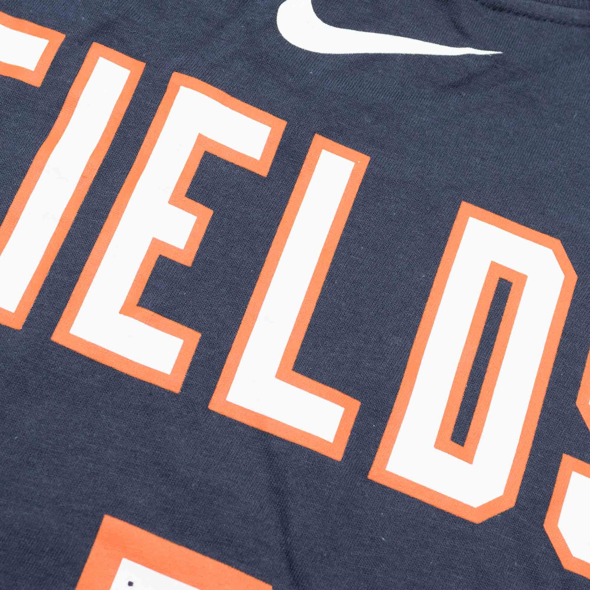 Offiziell lizensiertes Nike Cotton NFL Player Tee mit aufgedruckten Logos und Schriftzügen im originalen Trikotdesign. Auf der Vorderseite sind das Chicago Bears Teamlogo und die Spielernummer 1 aufgedruckt. Die Rückseite ist mit dem Nike Swoosh Logo, dem Spielernamen (FIELDS) und der Spielernummer (1) bedruckt.