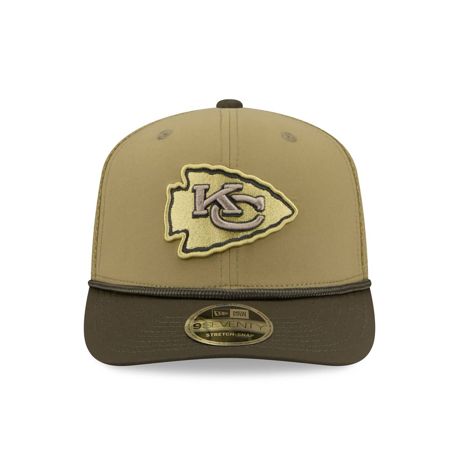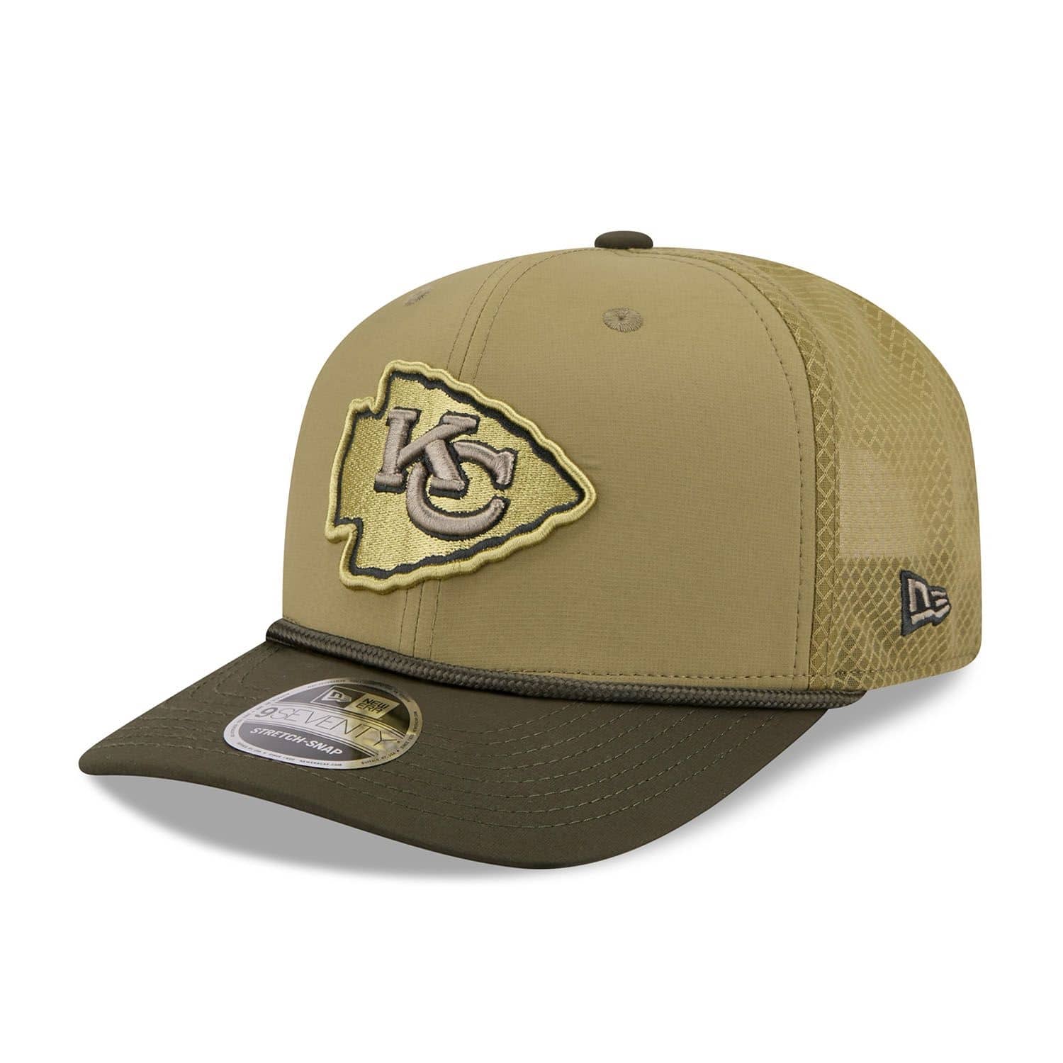New Era American Football Snapback Cap von deinen Kansas City Chiefs im 9SEVENTY Trucker Style aus der offiziellen On-Field 2025 NFL Salute to Service Kollektion.