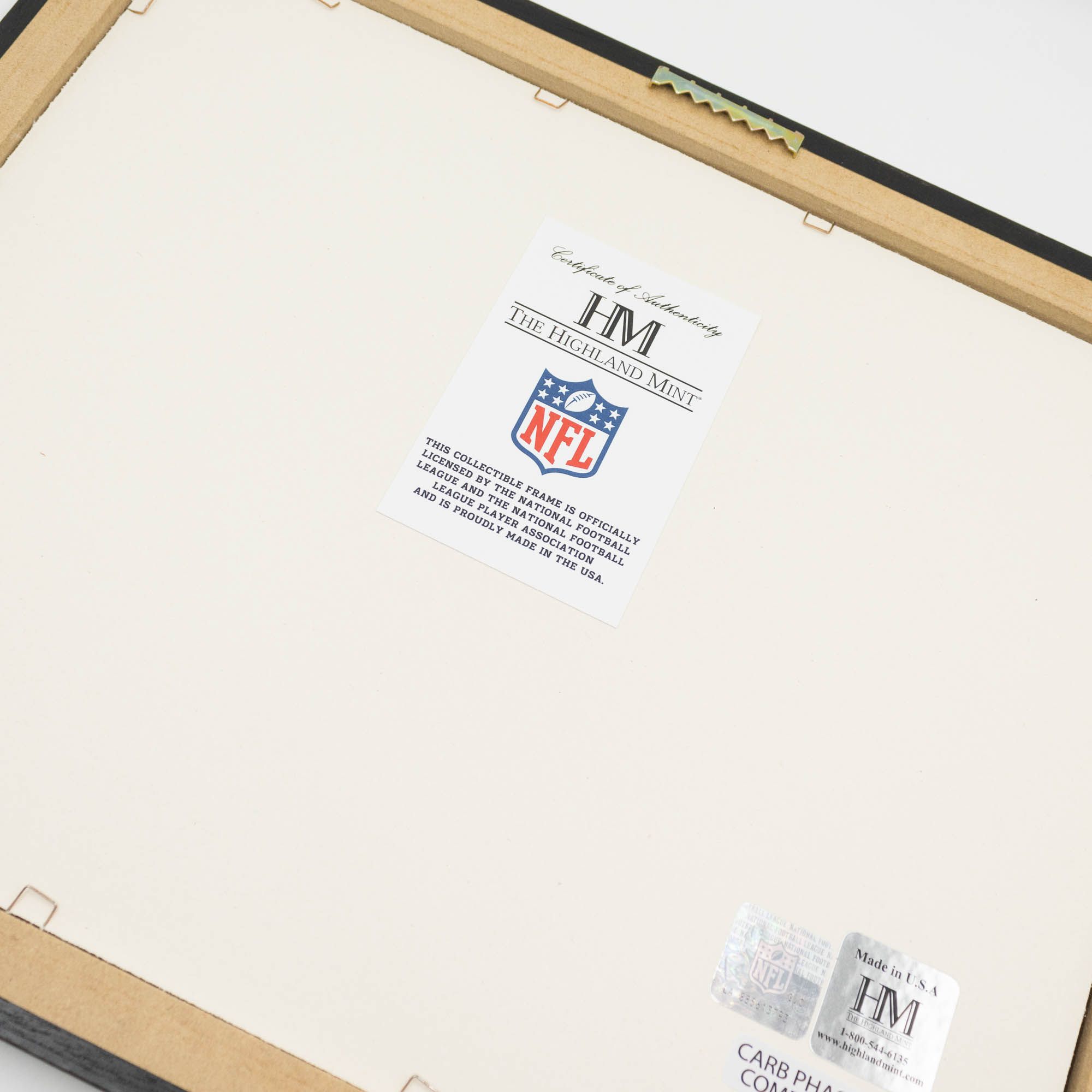 Auf der Rückseite des Bilderrahmes befindet sich das Echtheitszertifikat. Es handelt sich um eine handnummerierte limitierte Auflage von nur 5.000 Stück und ist eine absolute Bereicherung für jedes Football Fan-Cave. Dieses hochwertige Sammlerstück is offiziell von der NFL lizenziert und wurde direkt in den USA von The Highland Mint hergestellt.