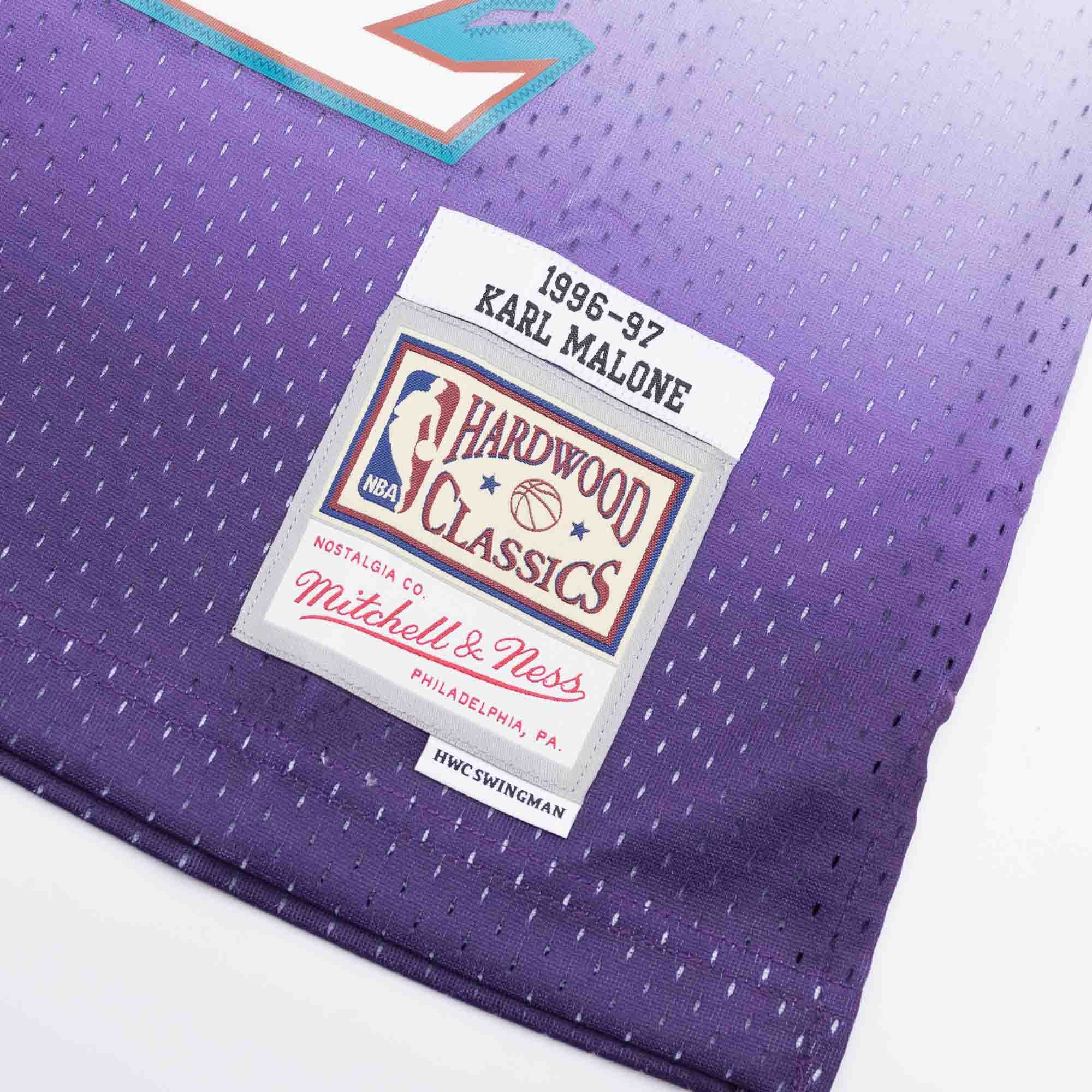 Mitchell & Ness NBA Herren Swingman Basketball Trikot von Karl "The Mailman" Malone, Legende der Utah Jazz aus der Saison 1996-97.