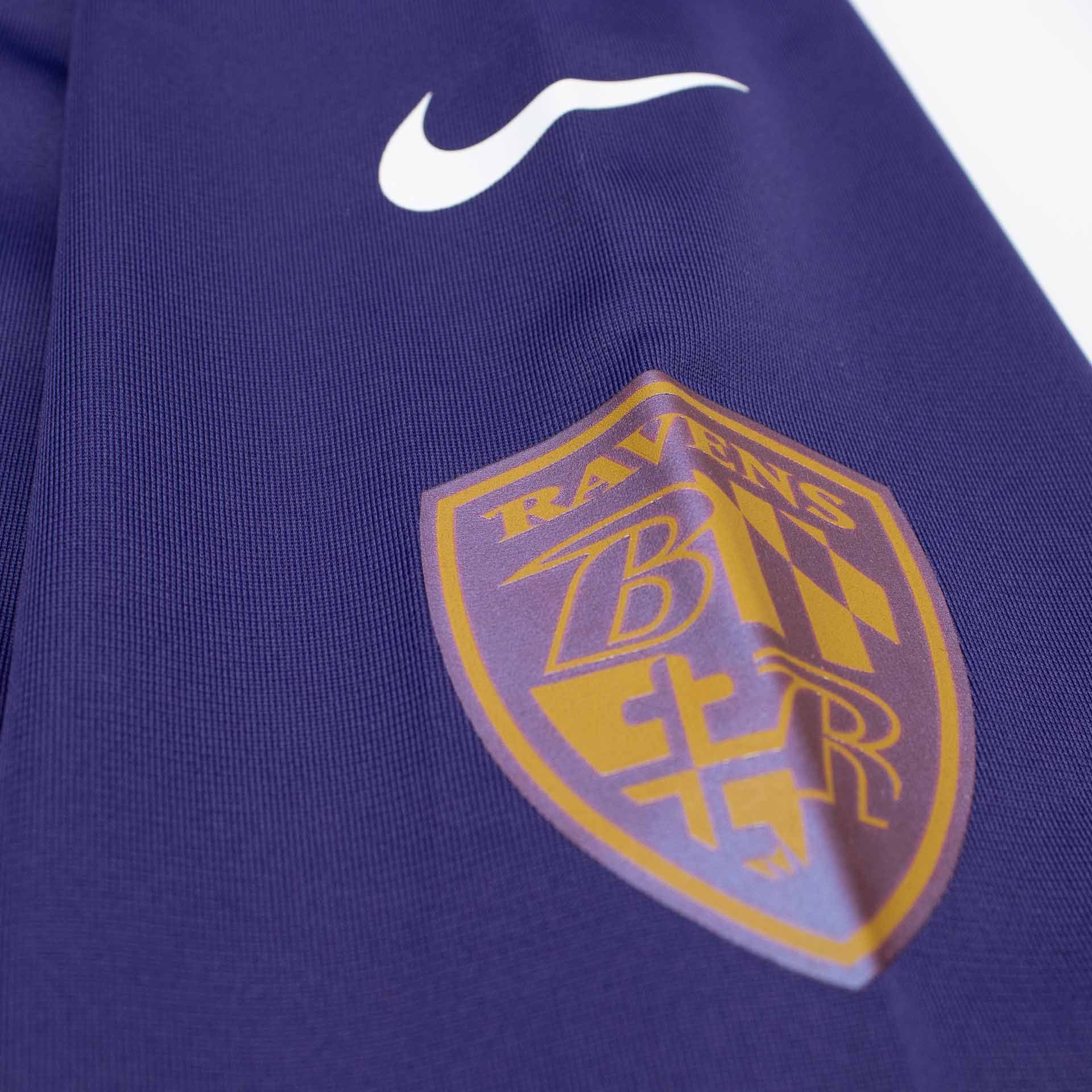 - Ravens Schriftzug auf der Brust und Teamlogos auf den Ärmeln