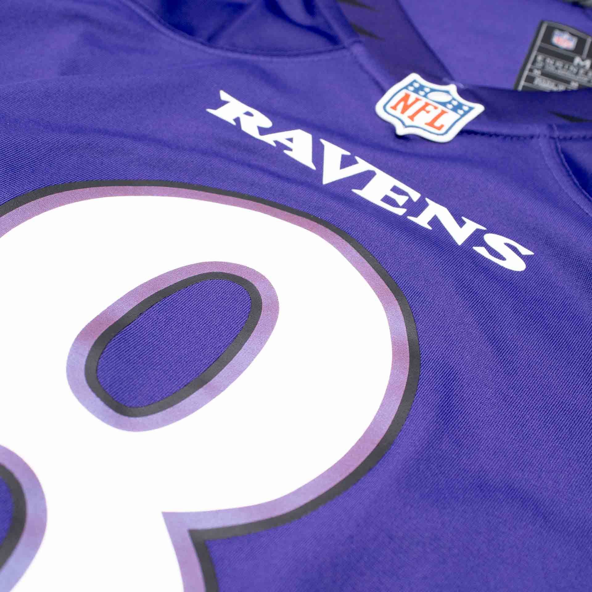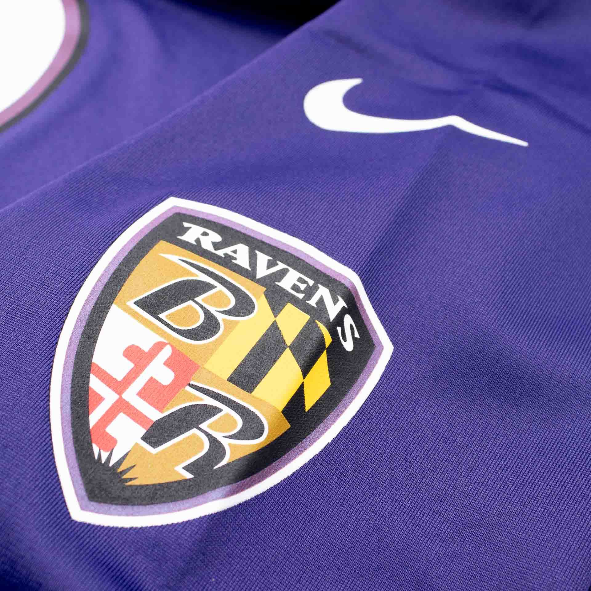 - Ravens Schriftzug auf der Brust und Teamlogos auf den Ärmeln