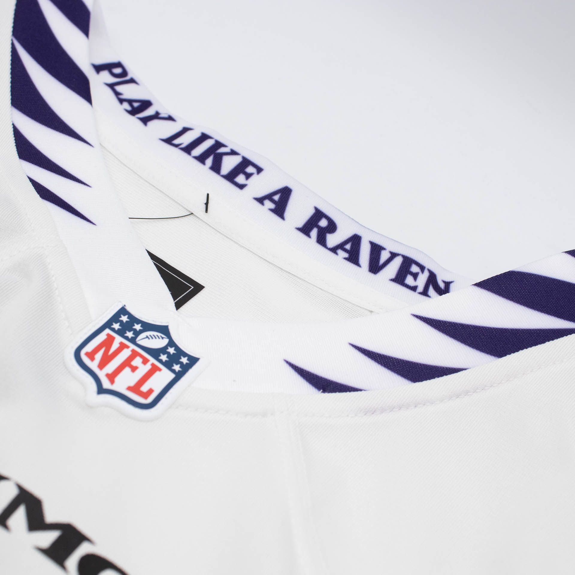 Nike NFL Herren American Football Trikot von Baltimore Ravens Quarterback Lamar Jackson im weißen Game Style.