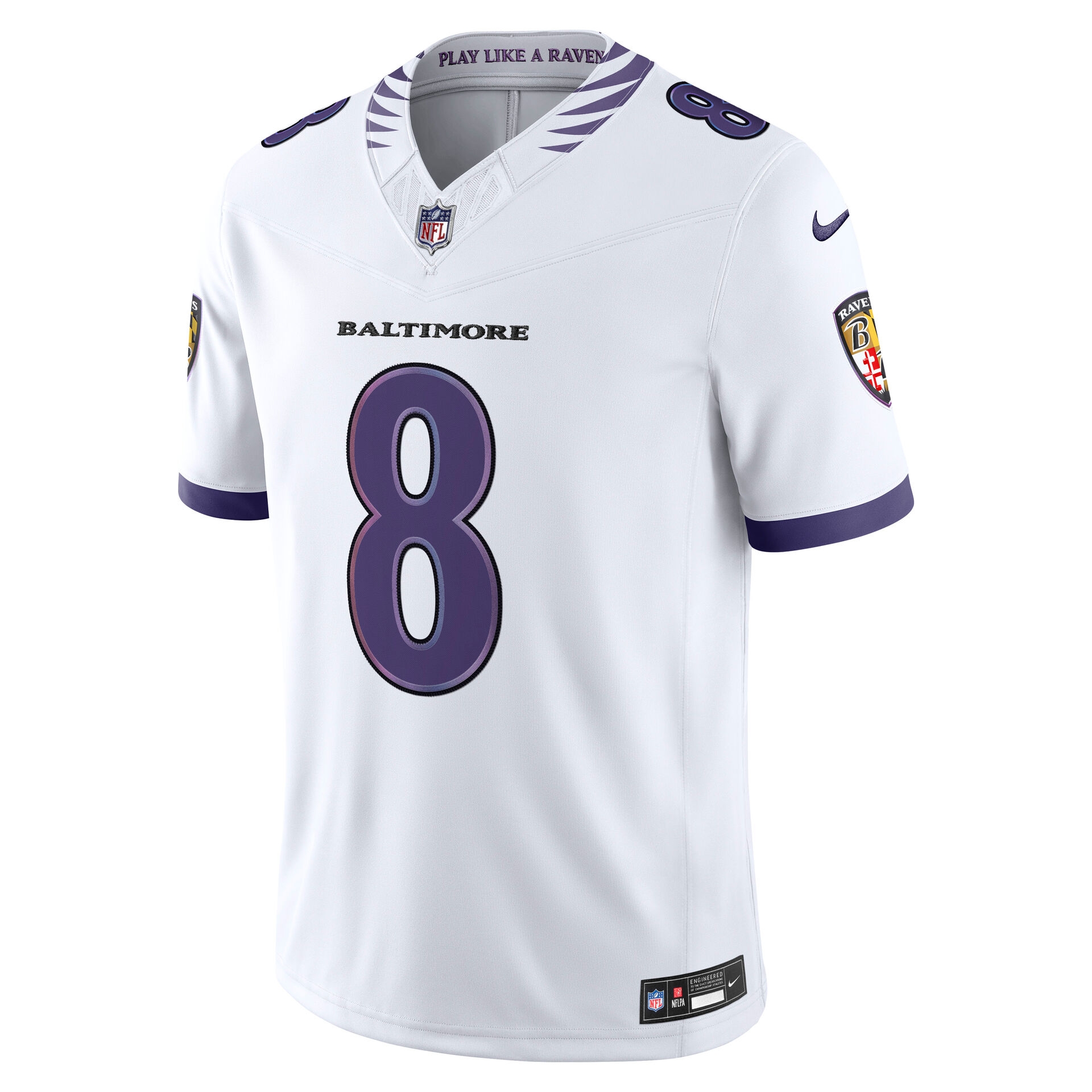 Mit dem neuen Ravens Limited Jersey aus der „The Next Flight"-Ära bringst du den On-Field Look direkt in deinen Alltag. Hochwertige, durchgehend aufgenähte Details und das überarbeitete Teamdesign machen dieses Trikot zur ersten Wahl für Fans, die Wert auf Authentizität und Qualität legen.
