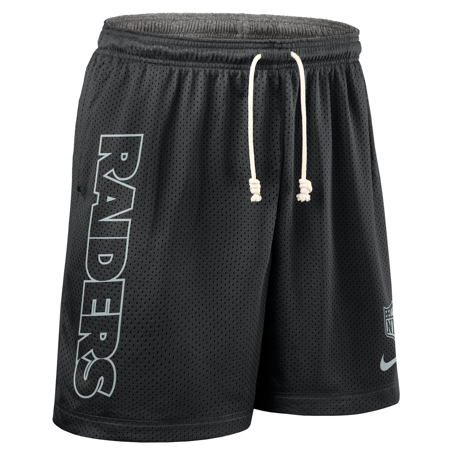 Nike Herren American Football Dri-FIT Reversible Mesh Shorts von deinen Las Vegas Raiders im offiziellen 2025 NFL On-Field Sideline Design.