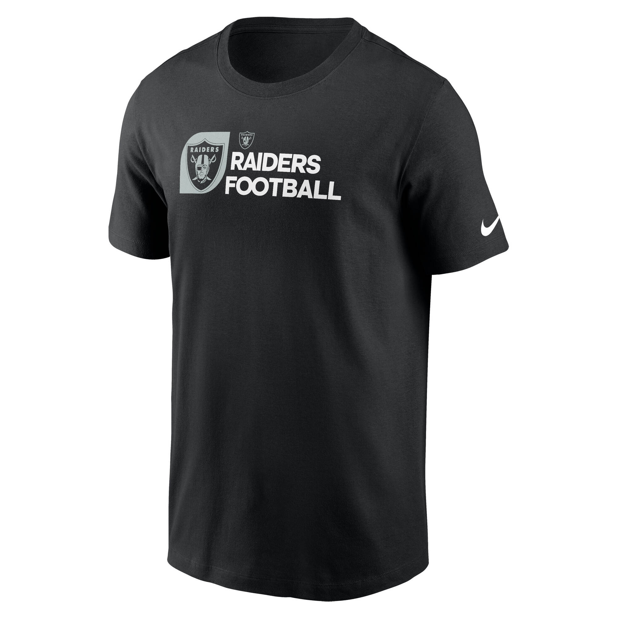 Zeige deinen lokalen Team Support mit dem Nike Essential Slogan T-Shirt. Dieses Shirt kombiniert den FOOTBALL Frontdruck mit dem auffälligen, großen RAIDERS FOOTBALL Slogan der Las Vegas Raiders auf der Rückseite. Der linke Ärmel ist Markengerecht mit dem ikonischen Nike Swoosh versehen.