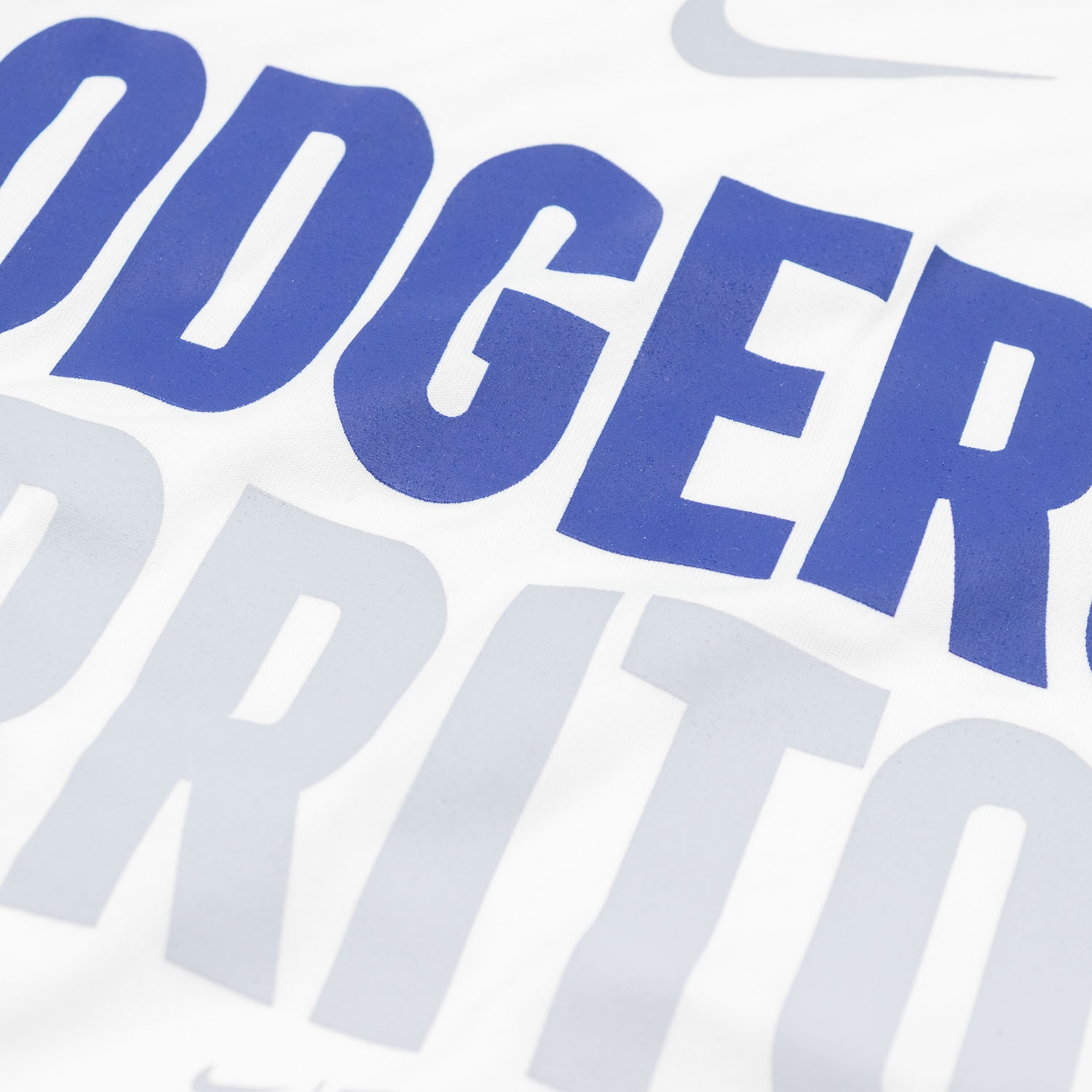 Neben den Performance Eigenschaften zeigt dieses Nike Tee deine ganz besondere Verbundenheit zu deinem Team. Die Shirtfront ist neben dem Teamlogo zusätzlich mit dem lokalen Schriftzug bedruckt und zeigt damit ganz klar, dass du nicht nur ein weiterer Los Angeles Dodgers Fan bist!