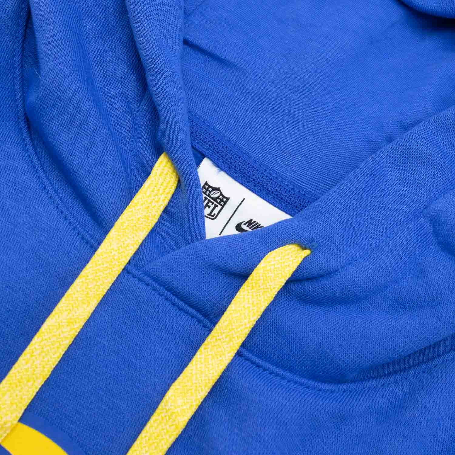 Nike American Football Herren Team Issue Club Fleece Kapuzenpullover von deinen Los Angeles Rams aus der offiziellen 2024 NFL On Field Sideline Kollektion.