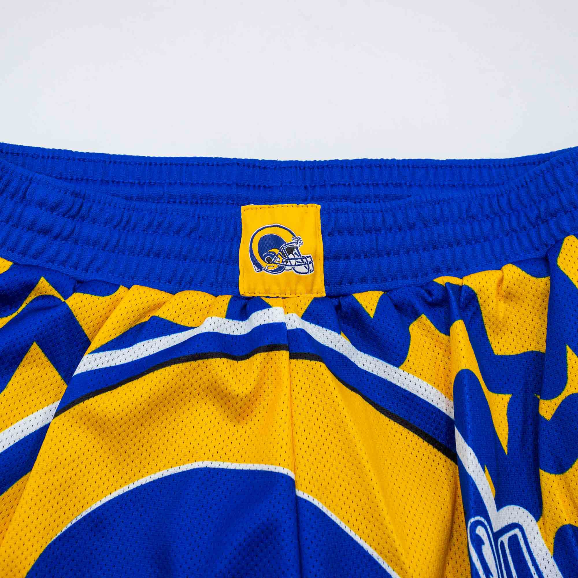 Mitchell & Ness NFL Herren Football Shorts von deinen Los Angeles Rams im Jumbotron 2.0 Style.