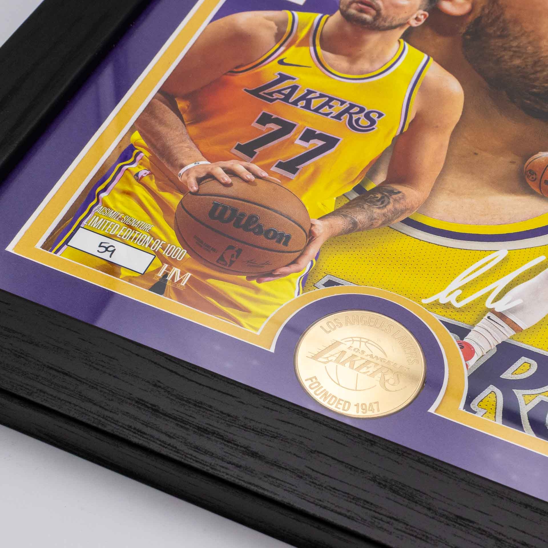 Highland Mint NBA gerahmtes Bild von Los Angeles Lakers Superstar Luka Dončić im Artist Proof Design mit Gedenkmünze.