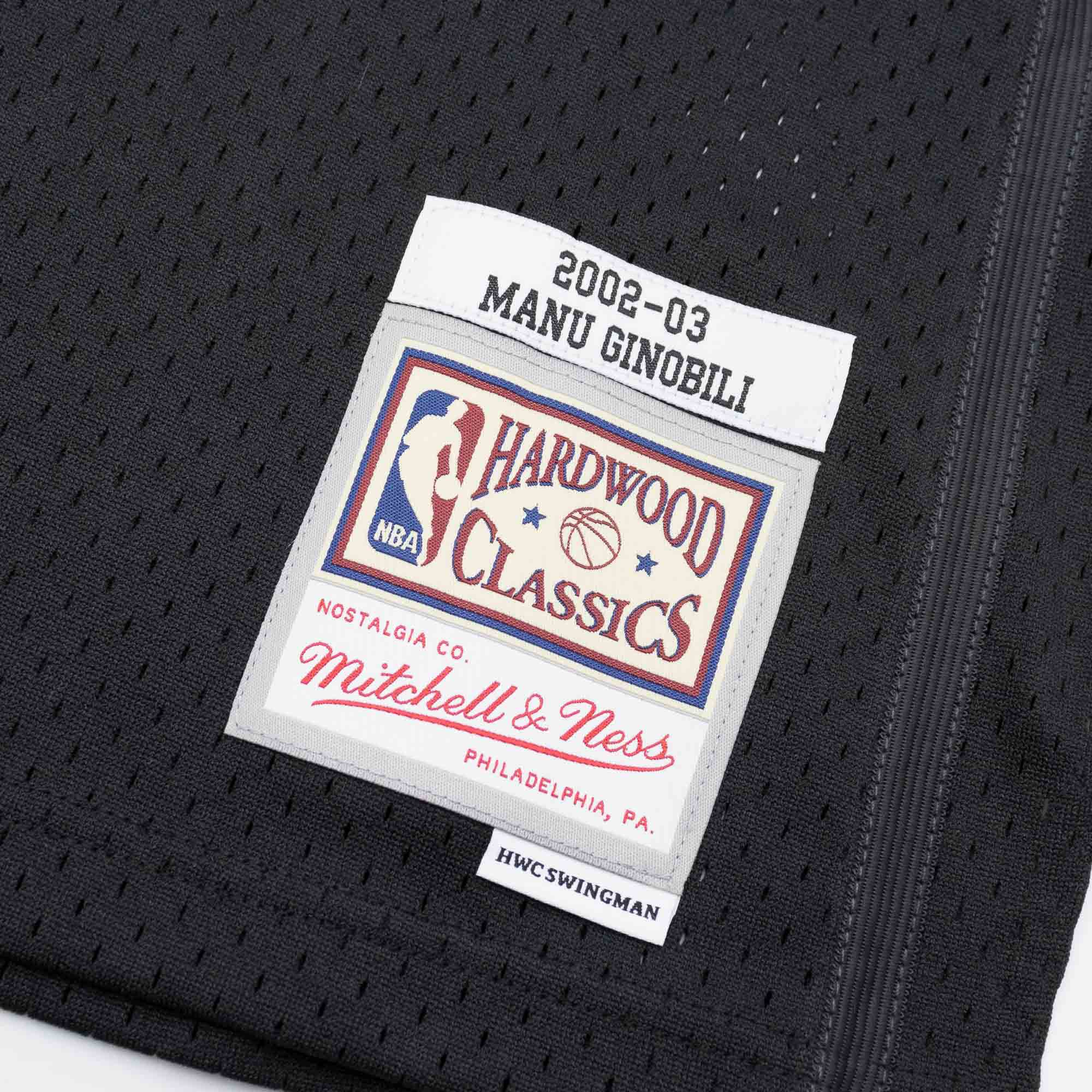 Mitchell & Ness NBA Herren Basketball Swingman Trikot von Manu Ginobili, Legende der San Antonio Spurs. Black Team Color Limited Edition.