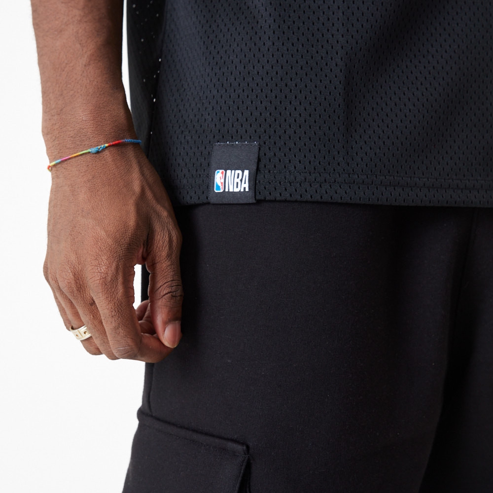 Das New Era Mesh Teamlogo NBA T-Shirt überzeugt als modisches Jersey. Das T-Shirt besteht aus hochwertigen, schweren Polyester-Mesh und ist sehr angenehm zu tragen. Am vorderen Saum befindet sich neben dem gestickten New Era Logo das NBA Label. Rip-Bündchen in den Teamfarben runden das Design ab.