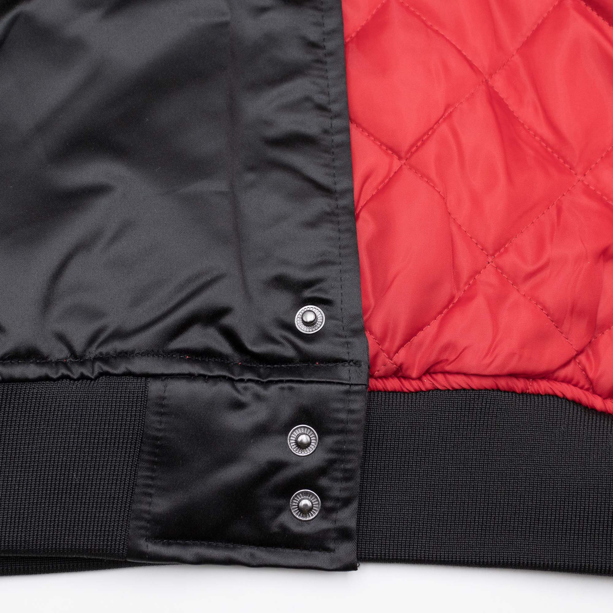 Die Mitchell and Ness Premium NBA Jacke mit klassischer Satin-Außenhülle aus der Hardwood Classics Kollektion bringt mit dem dreifarbigen Miami Heat Teamdesign deinen Support auf die Straße. Die NBA Jacke hat zwei äußere Taschen, eine Innentasche und eine durchgehende Knopfleiste. Das Design ist den amerikanischen College und High School Jacken nachempfunden und macht mit dem glänzenden Satin-Look modisch richtig was her. Der Mitchell & Ness Schriftzug ist am rechten Ärmelsaum aufgestickt. Auf der Front sind der klassische Miami Heat Schriftzug und das Retro-Teamlogo hochwertig aufgenäht. Abgerundet wird das Throwback-Design mit den aufgenähten Ärmelstreifen. Das mittelschwere Futter sorgt auch an kalten Tagen für eine angenehme Wärmeisolierung, die elastischen Strickbünde am Kragen, am Bund und an den Ärmelenden sorgen für den absoluten Retro-Look.