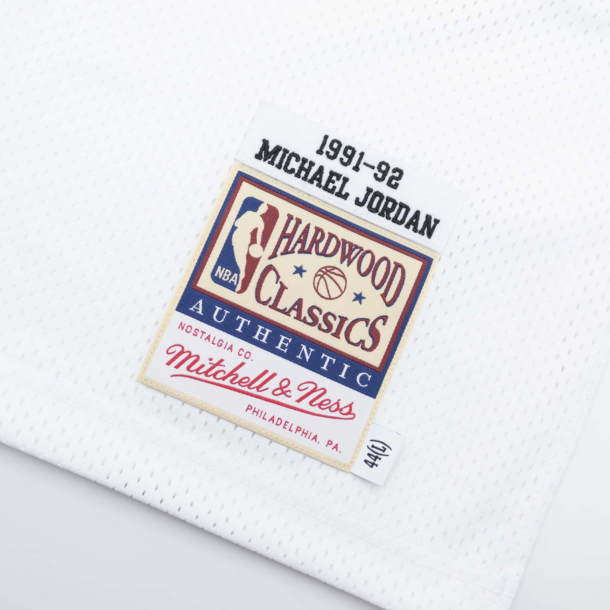 • Hardwood Classics Authentic Label: Aufgenähtes Mitchell & Ness Patch am Saum als Kennzeichen der Authentic Collection.