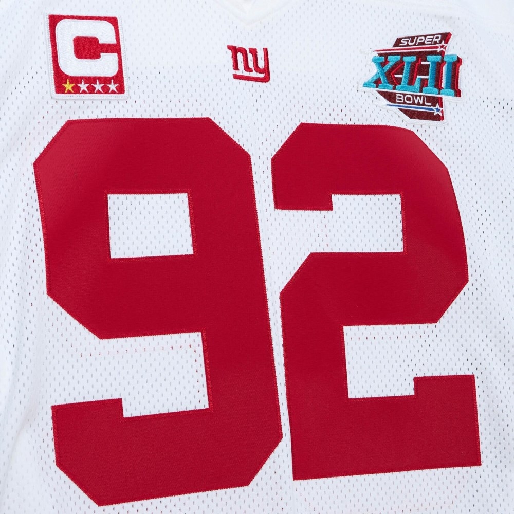 Mitchell & Ness NFL Herren American Football Trikot von New York Giants Legende Michael Strahan im 2007 Authentic Throwback Design. Mit Super Bowl XLII Patch.