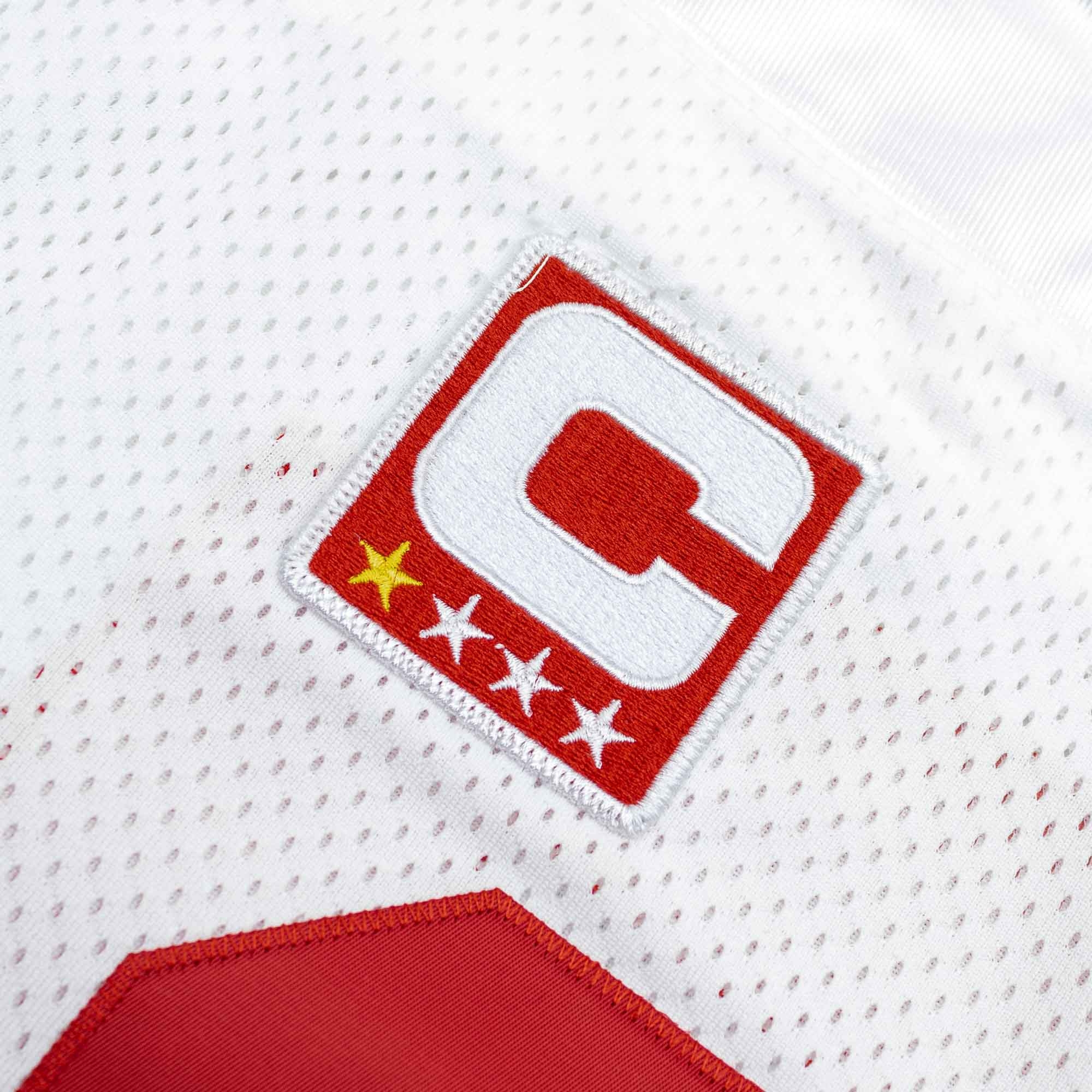 Authentisches NFL-Trikot im genauen Design der New York Giants aus der Saison 2007. Das Trikot entspricht den originalen On-Field Trikots der NFL-Profis aus dieser Ära. Alle Logos, Zahlen und Buchstaben sind hochwertig aufgenäht. Der Stoff ist extra schwer und robust um dem Spielbetrieb standzuhalten. Das Trikot ist mit dem Spielernamen (STRAHAN) und den Nummern 92 dekoriert. Auf der Brust sind der Super Bowl XLII Patch und der Captain Patch aufgestickt. Das Mitchell & Ness Throwback Authentics Label am Saum ist natürlich aufgenäht. Die Mitchell & Ness NFL Trikots aus der Authentic Collection sind ein Must-have für jeden New York Football Giants Fan und eine Erinnerung an die besten Spieler und Legenden dieses Sports!
