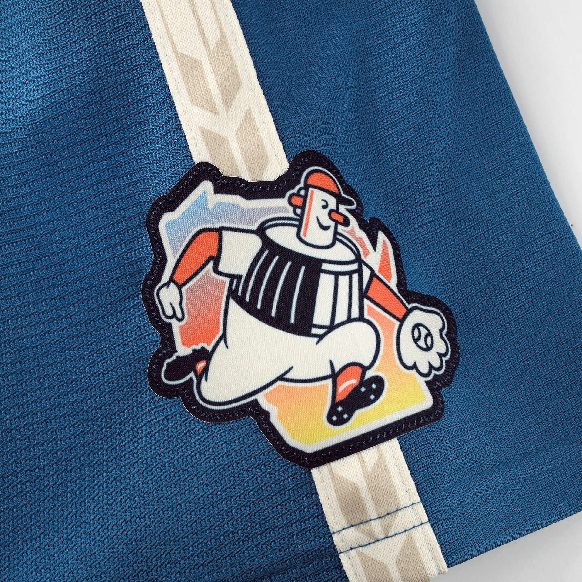 - Ärmel-Patch mit modern interpretiertem Barrelman-Logo und Umriss des Bundesstaates
