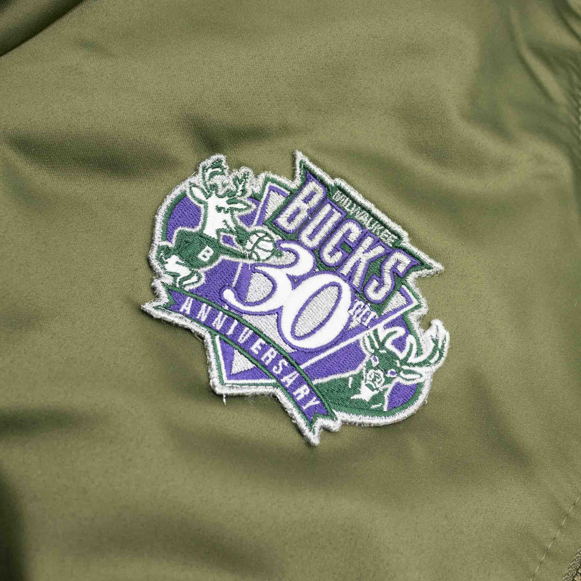"Milwaukee Bucks Olive Mitchell & Ness Heavyweight Satin NBA Jacke"
