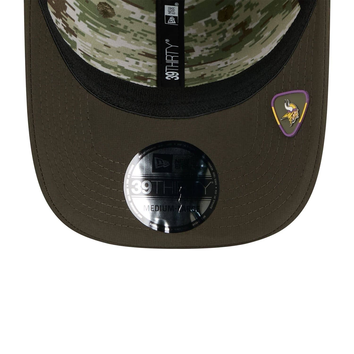New Era American Football Cap von deinen Minnesota Vikings im Stretch-Fit 39THIRTY Style aus der offiziellen On-Field 2025 NFL Salute to Service Kollektion.