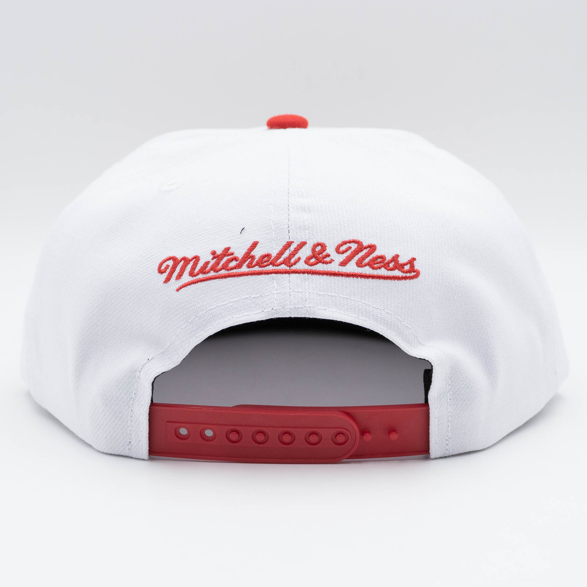 Klassische Mitchell & Ness Original Fit Snapback mit schlanken, flachen Schirm und hoher, fester Krone. Für mehr Atmungsaktivität sorgen die gestickten Ösen; das innenseitige Schweißband erhöht den Tragekomfort. Den flachen Capschirm kannst du nach Belieben in die gewünschte Form biegen.