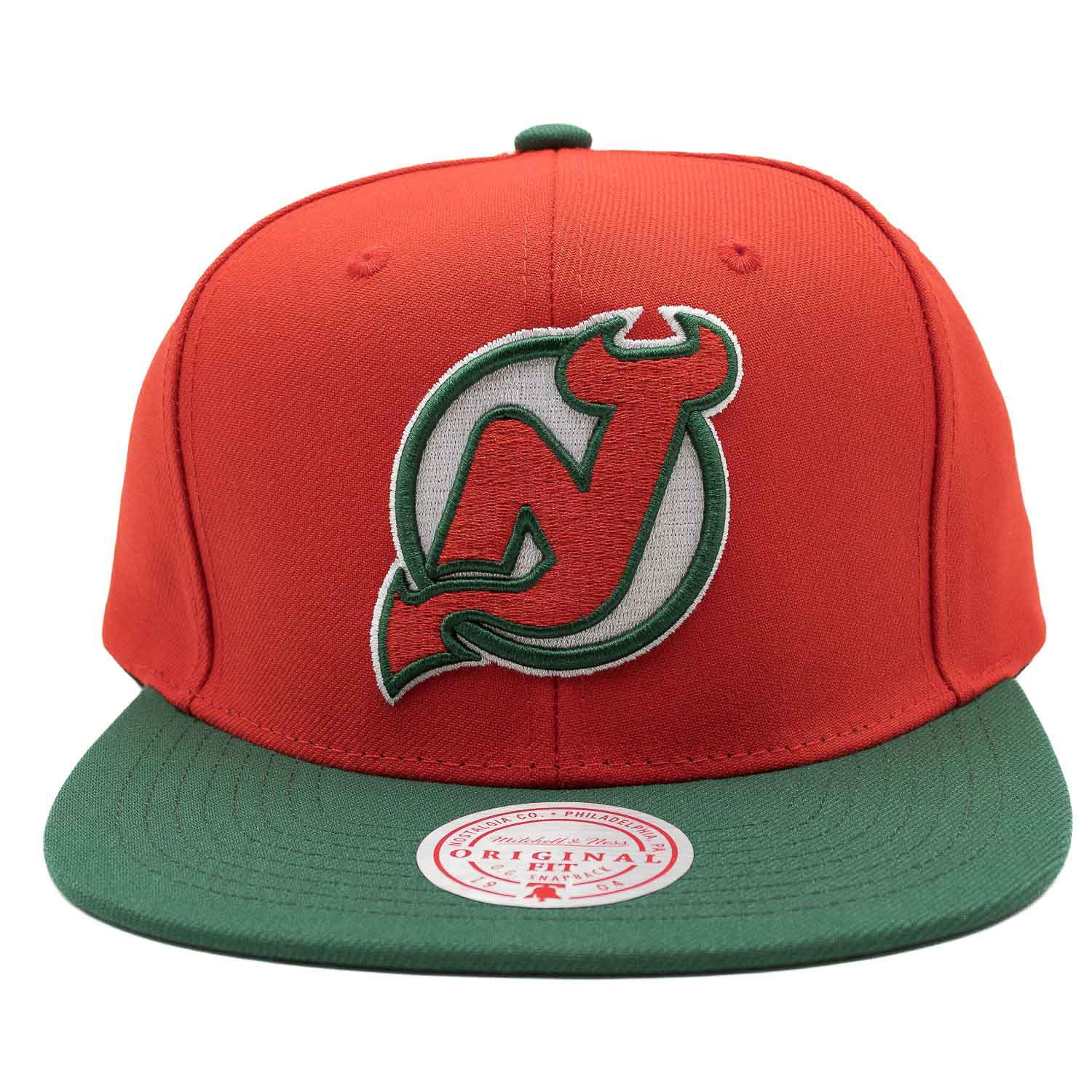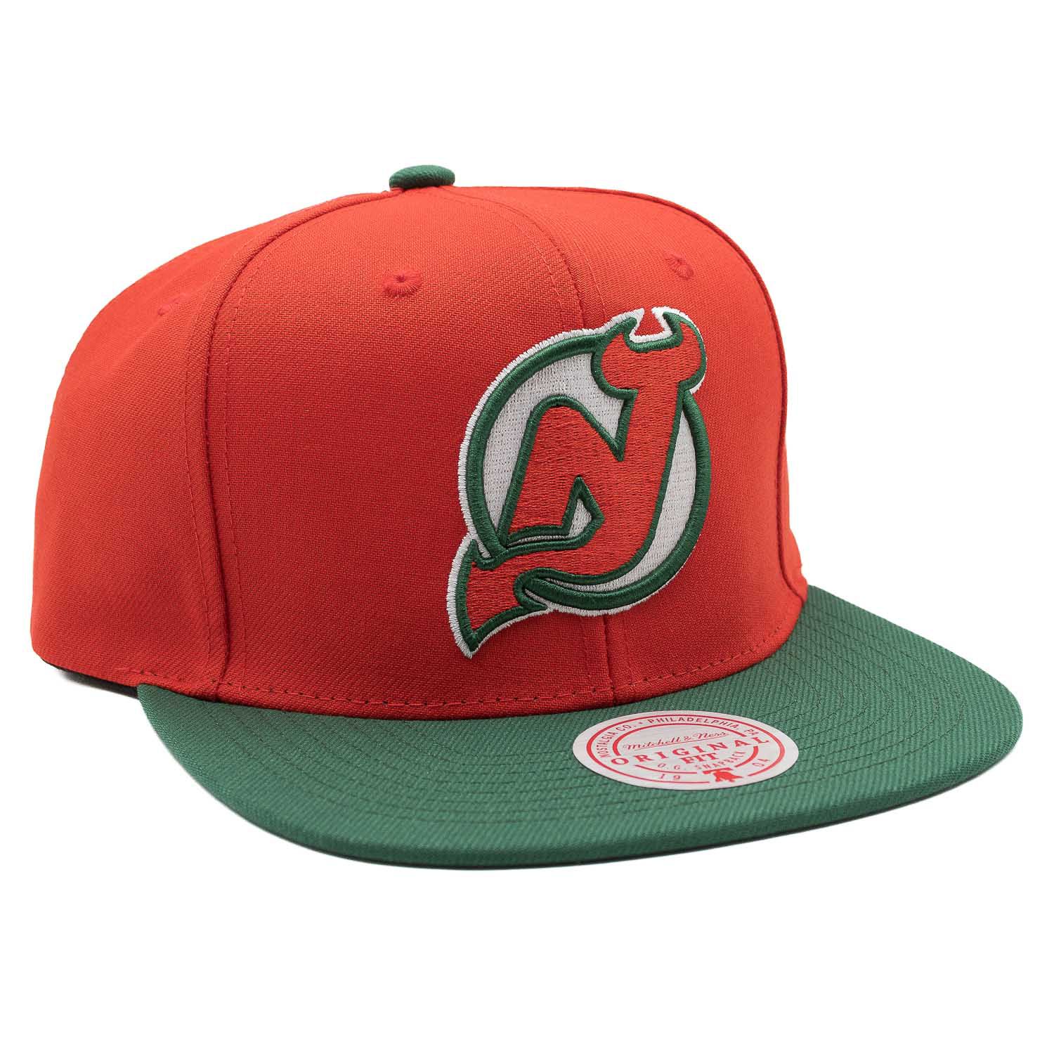 Mitchell & Ness NHL Original Fit Eishockey Snapback Cap von den New Jersey Devils im zweifarbigen Team Logo Design.