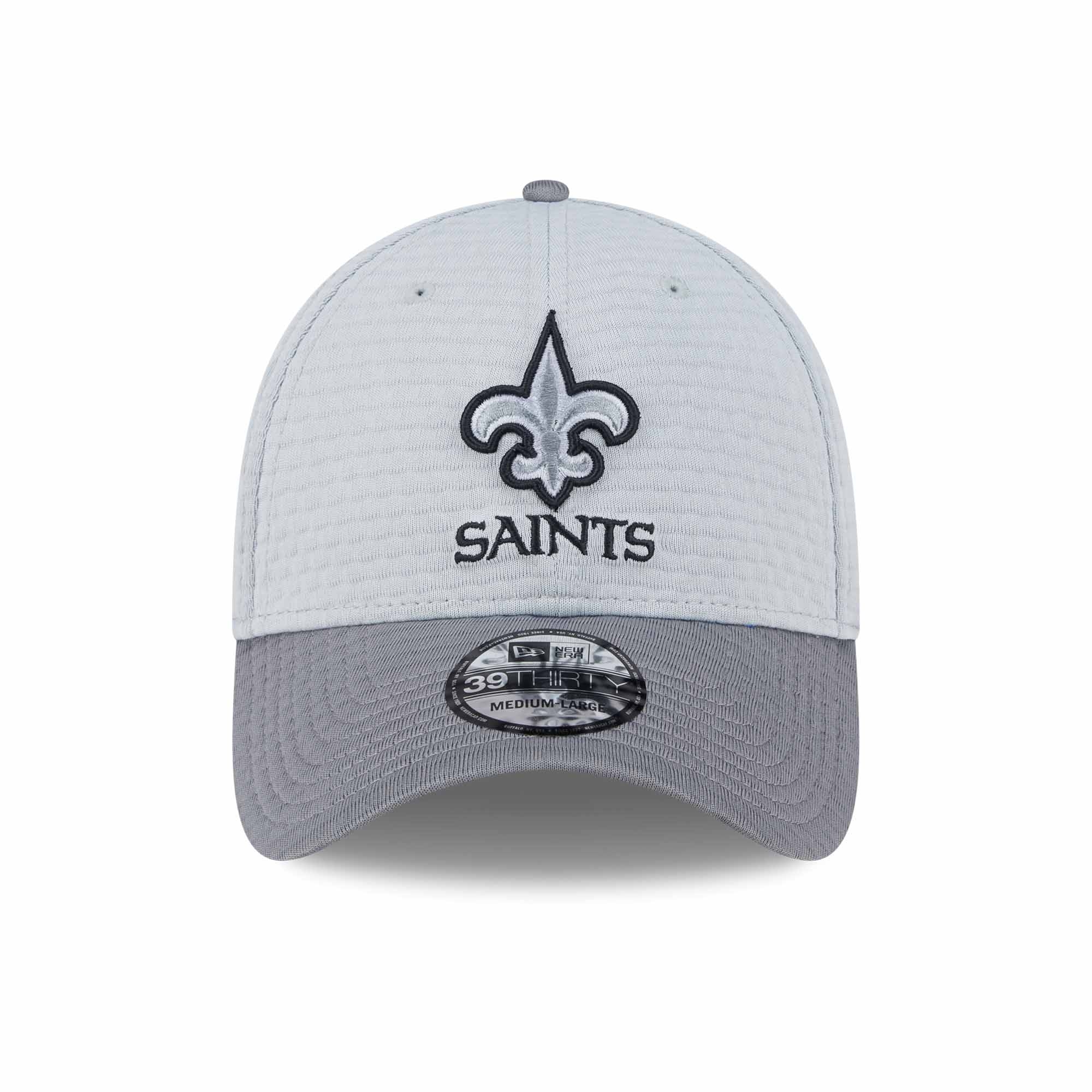 New Era American Football Cap von deinen New Orleans Saints im Stretch-Fit 39THIRTY Style aus der offiziellen 2024 NFL Training Camp Kollektion.