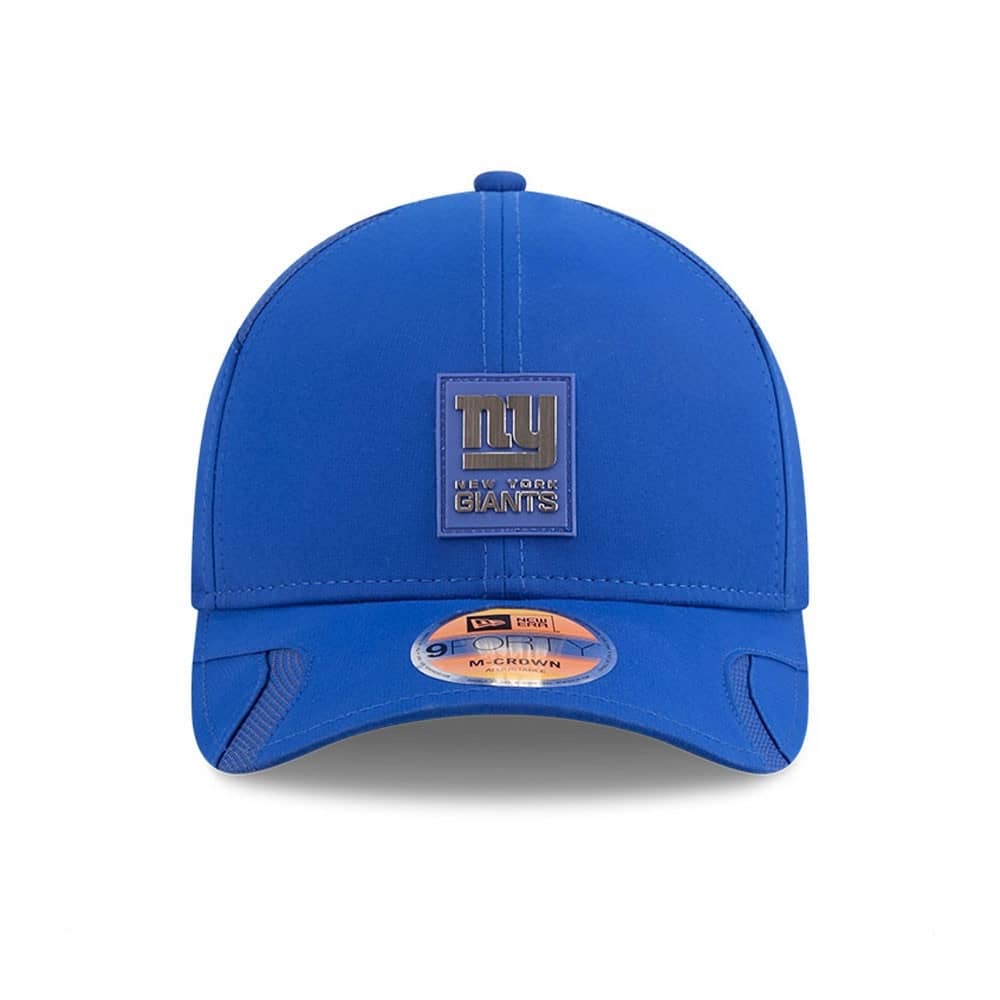"New York Giants 2025 NFL On-Field Sideline 9FORTY M-Crown Snapback Cap Blau"