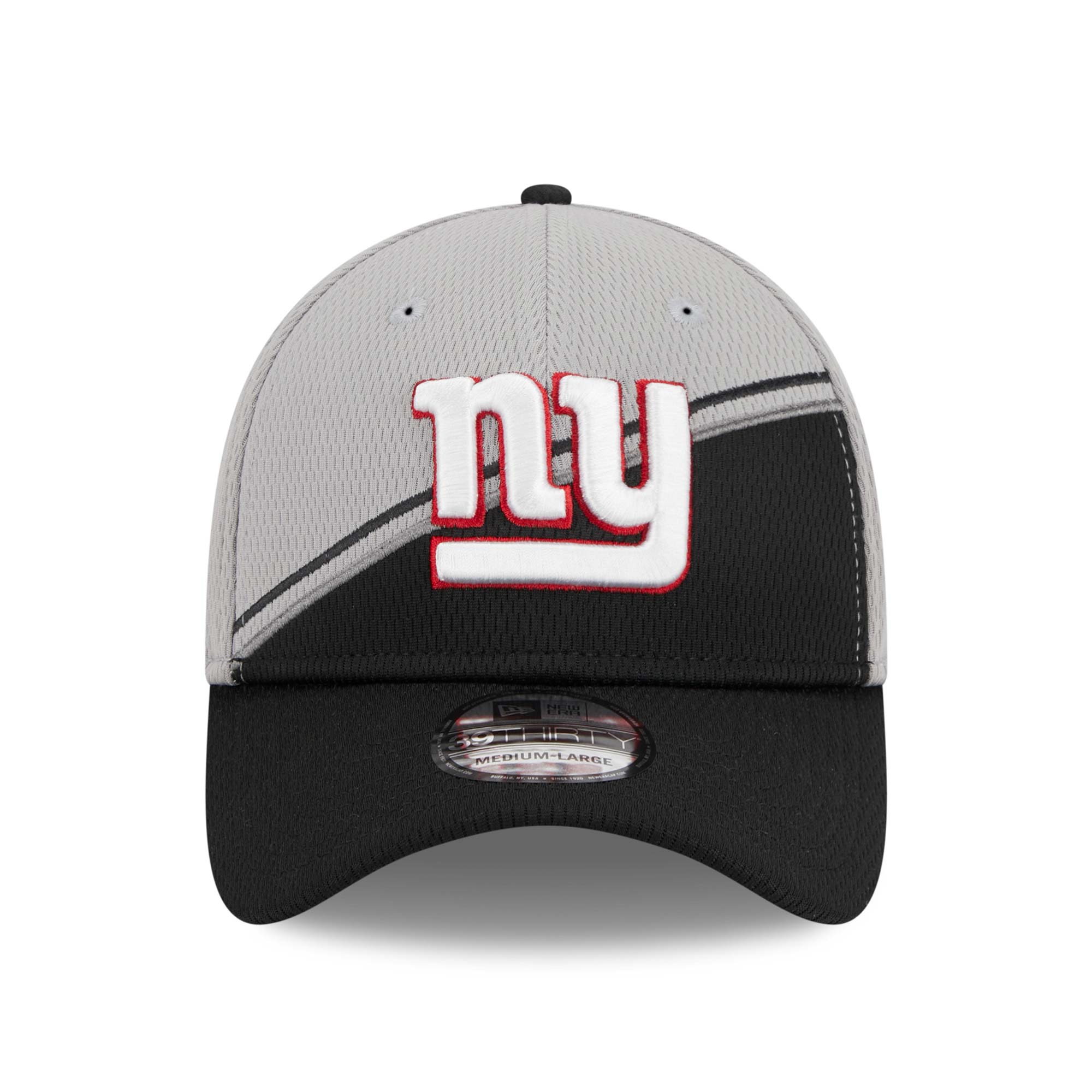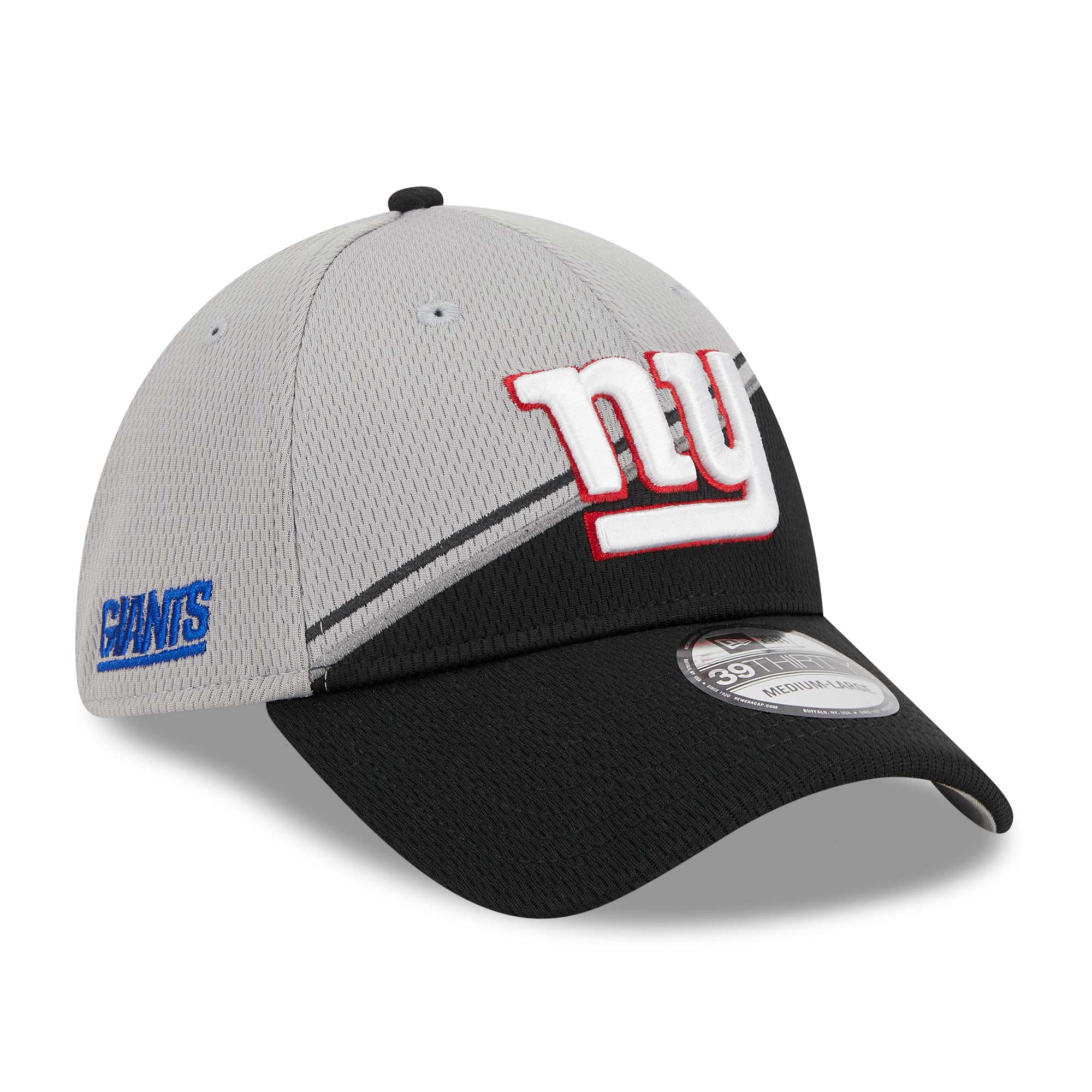 New Era American Football Flex Cap von deinen New York Giants im Stretch-Fit 39THIRTY Style aus der schwarz-grauen Colorway 2023 NFL On Field Sideline Kollektion.