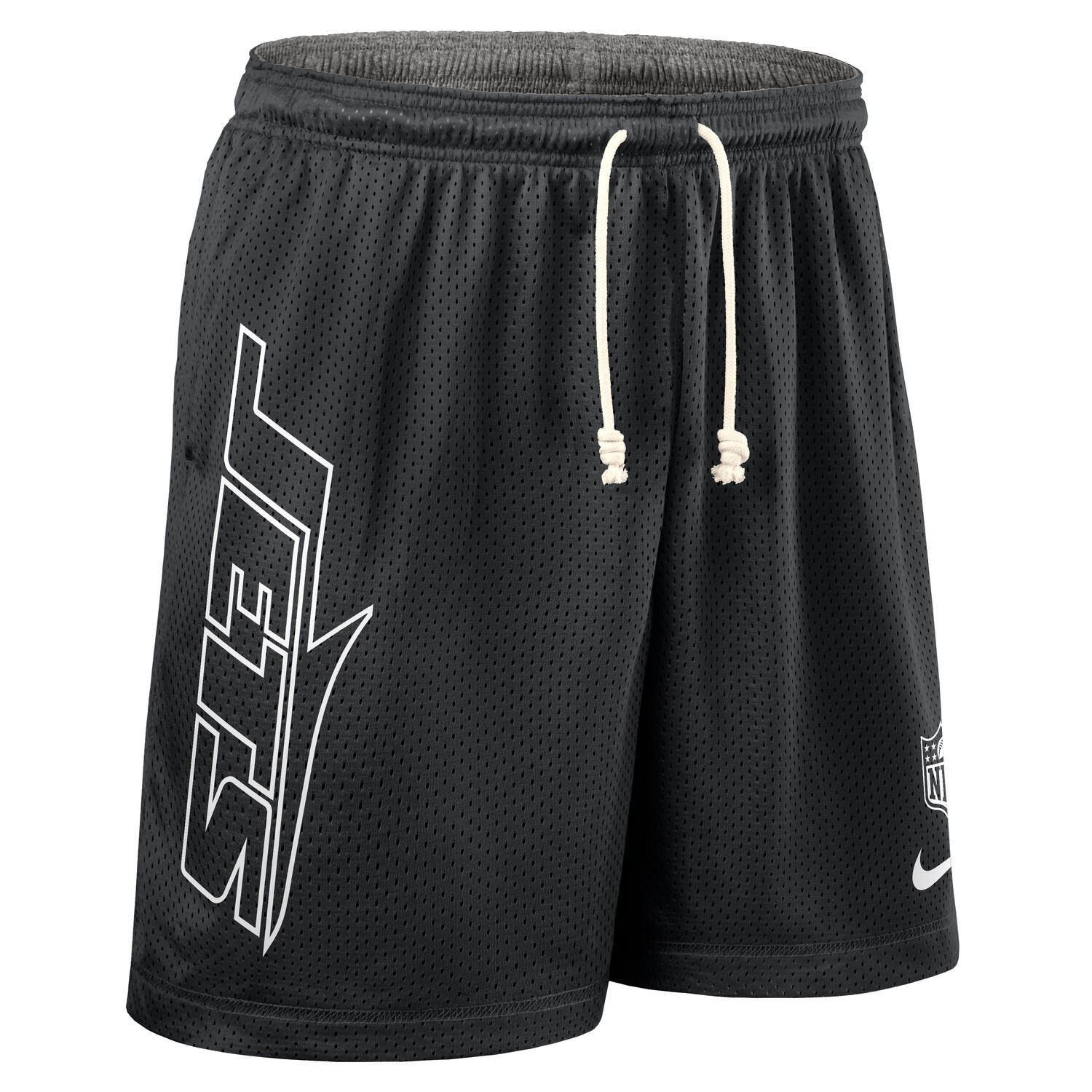 Nike Herren American Football Dri-FIT beidseitig tragbare Reversible Mesh Shorts von deinen New York Jets im offiziellen 2025 NFL On-Field Sideline Design.