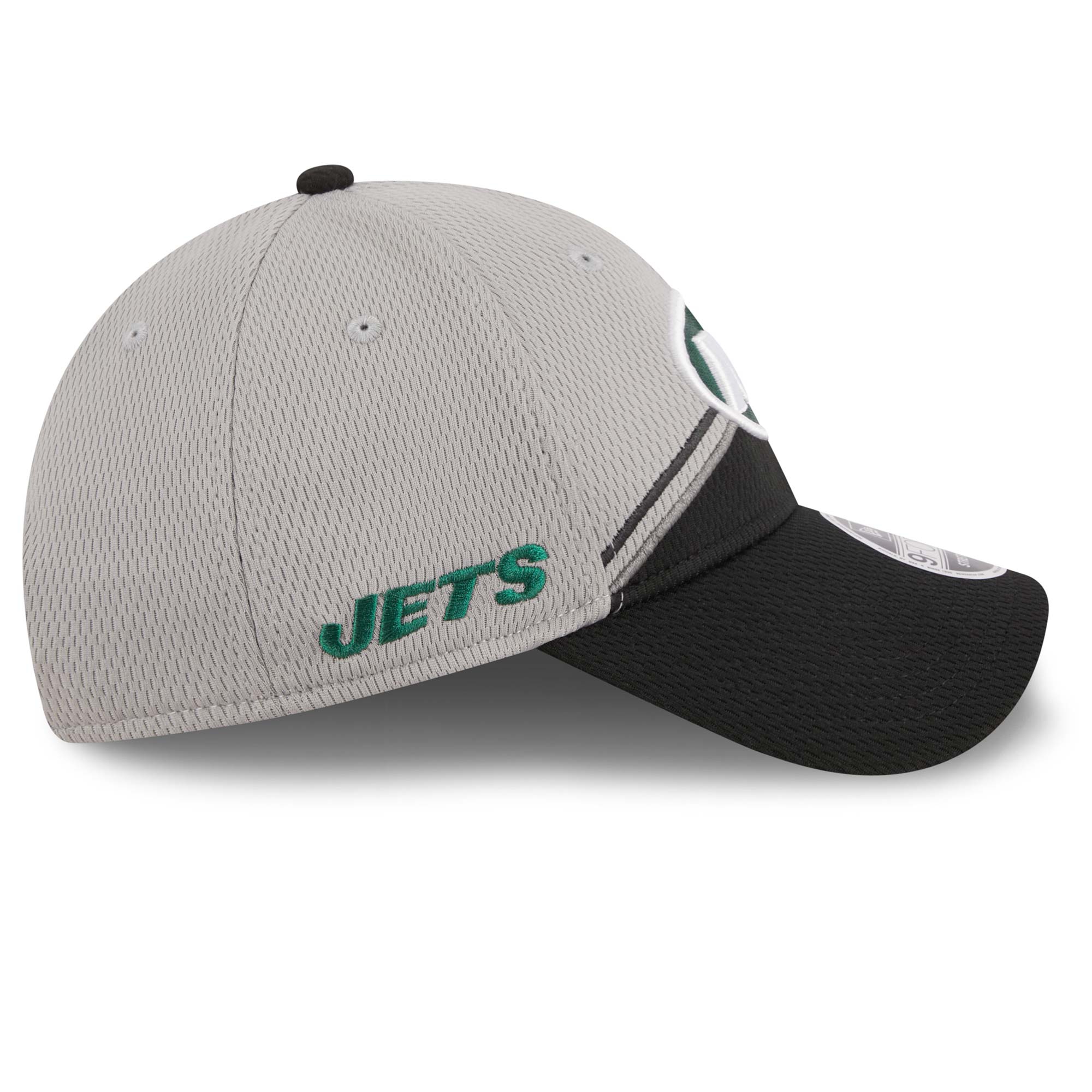 Mit der 2023 NFL Sideline Headwear Collection kommt das Football Feeling in deinen Alltag! Die schwarz-graue New York Jets Cap überzeugt in der Colorway Edition. Die Capfront ist mit dem hochwertig aufgestickten Teamlogo im 3D-Design bestickt. Die offene Rückseite ist mit dem offiziellen NFL Shield bestickt. Abgerundet wird das klare Teamdesign mit dem gestickten Wordmark Logo auf der rechten Capseite. Die Schirmunterseite ist grau und das Schweißband ist schwarz. Das Capmaterial besteht aus Performance Mesh.