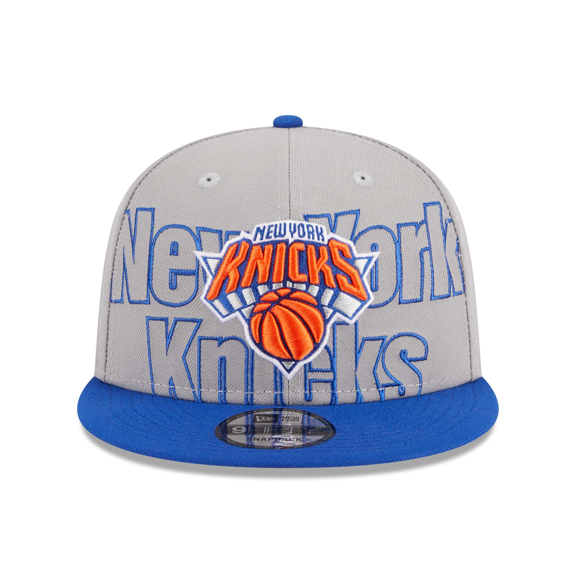 Offizielle Basketball Snapback Kappe aus der 2023 NBA Draft Kollektion produziert in Premium-Qualität von New Era. Die Cap-Vorderseite ist mit dem New York Knicks Teamlogo vor dem Hintergrund des Team-Wordmarks bestickt. Die zweifarbige Colorway Edition Cap kommt mit grauer Krone und Schirm in der offiziellen Teamfarbe. Die offene Rückseite mit Snapback-Verschluss ziert das offizielle NBA-Logo. Die Schirmunterseite ist grau.