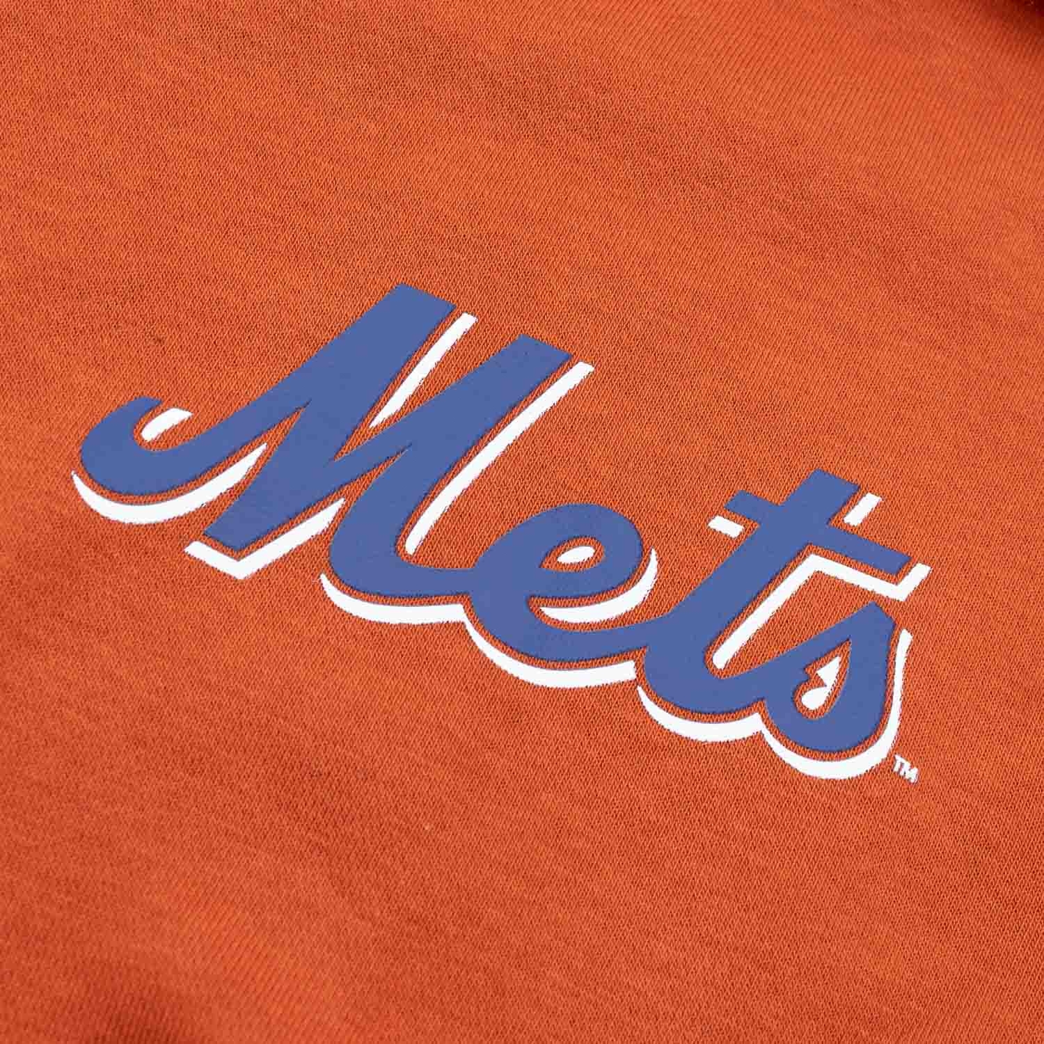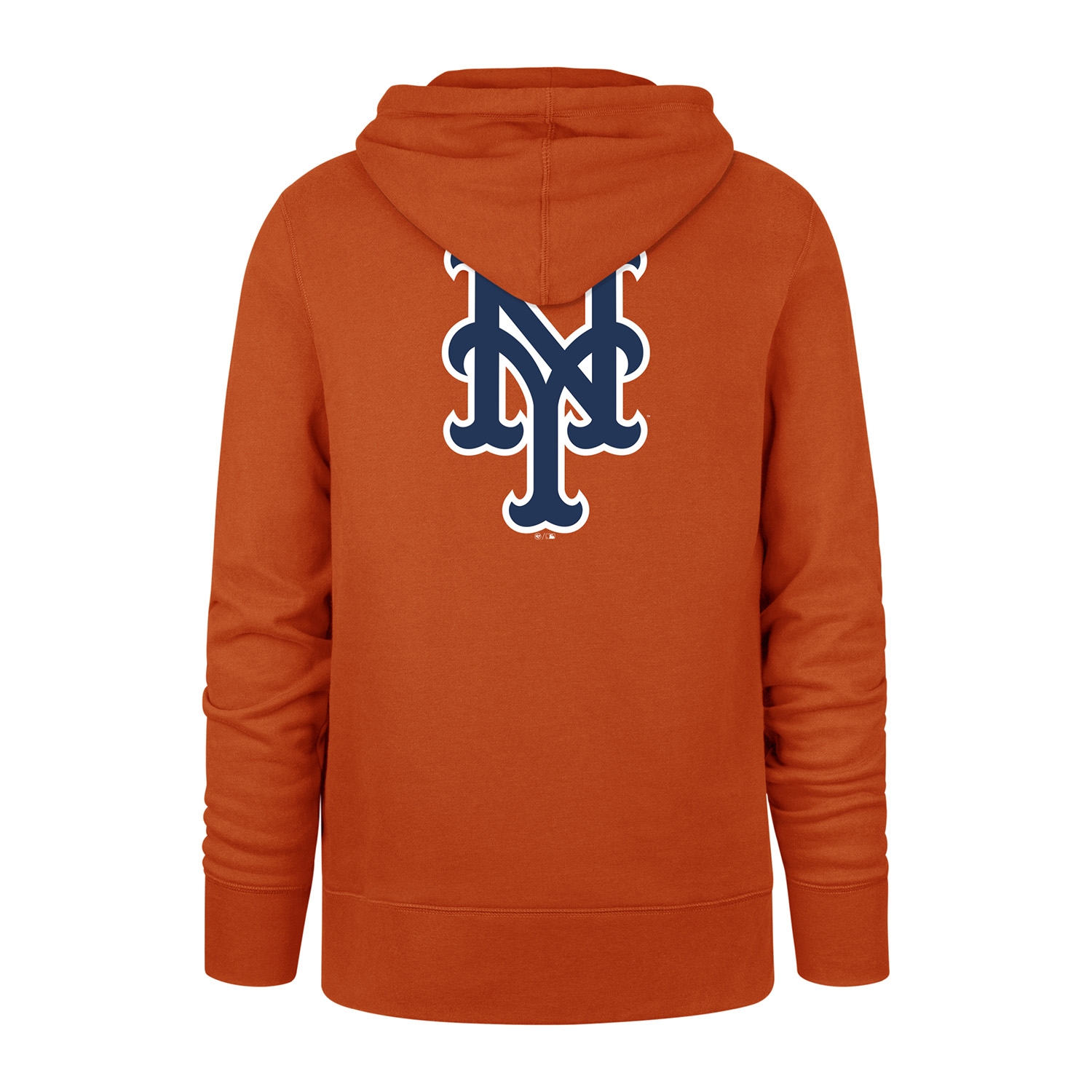 '47 MLB Herren Burnside Kapuzenpullover von deinen New York Mets mit Teamlogo Druck auf der Vorder- und Rückseite.