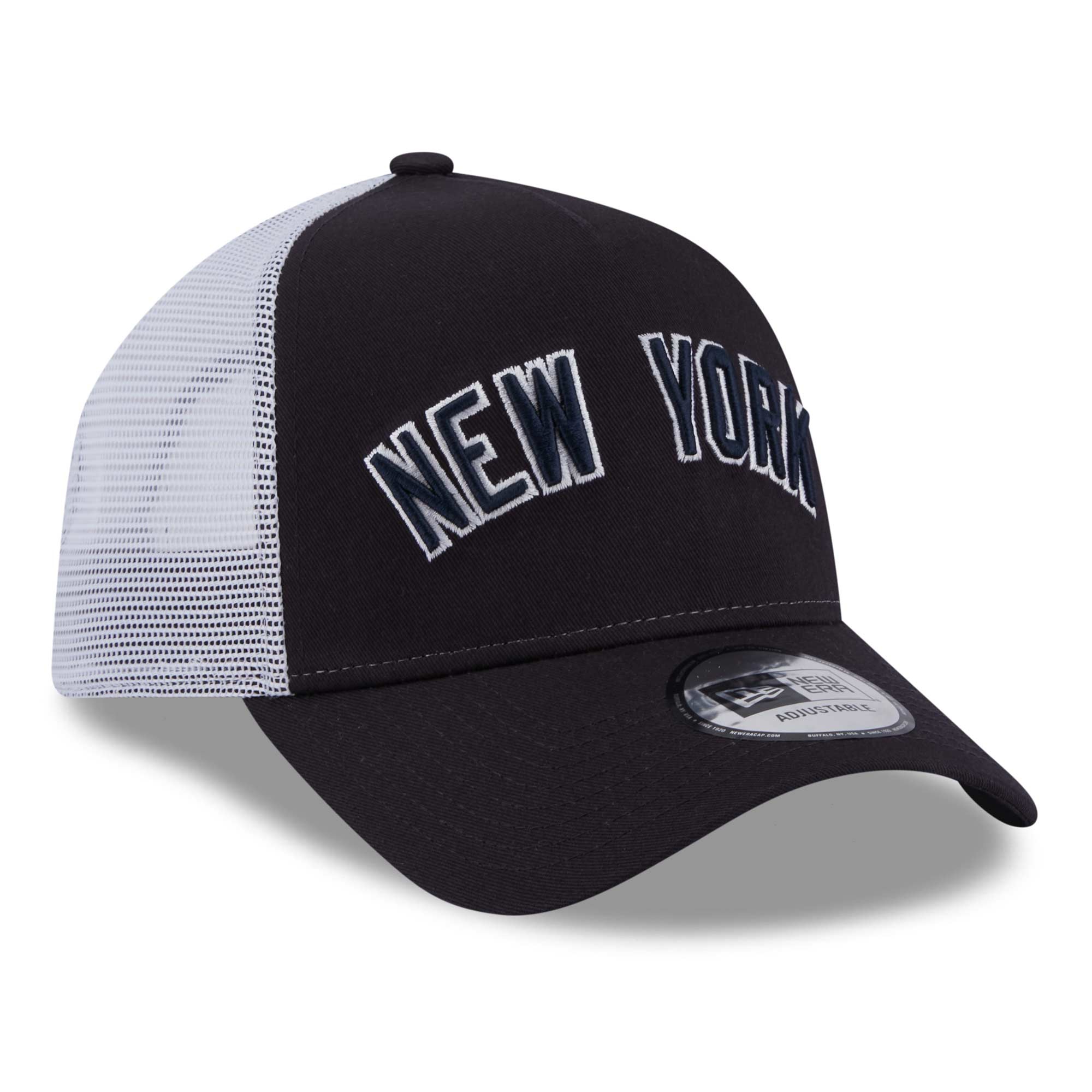 New Era MLB Baseball Trucker Kappe von deinen New York Yankees im klassischen Team Script Style.