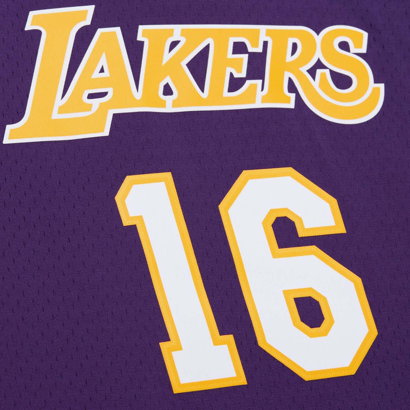 - Offizielles Swingman NBA-Trikot im klassischen Design der Los Angeles Lakers aus der Meisterschaftssaison 2009-10, getragen von Pau Gasol (#16), der mit seinem vielseitigen Spiel und seiner Führungsstärke auf dem Spielfeld maßgeblich zu den Titelerfolgen der Lakers beigetragen hat.