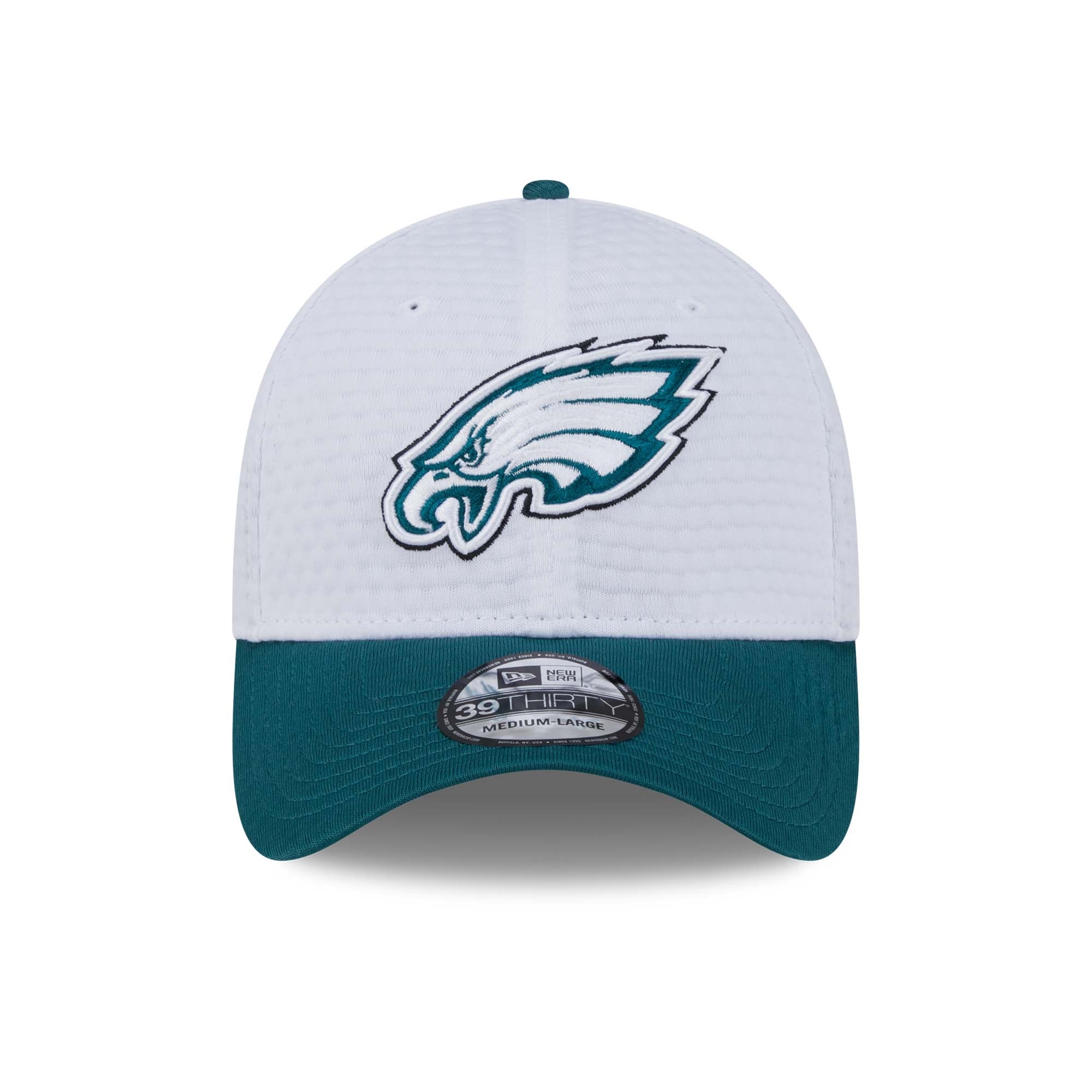 New Era American Football Cap von deinen Philadelphia Eagles im Stretch-Fit 39THIRTY Style aus der offiziellen 2024 NFL Training Camp Kollektion.
