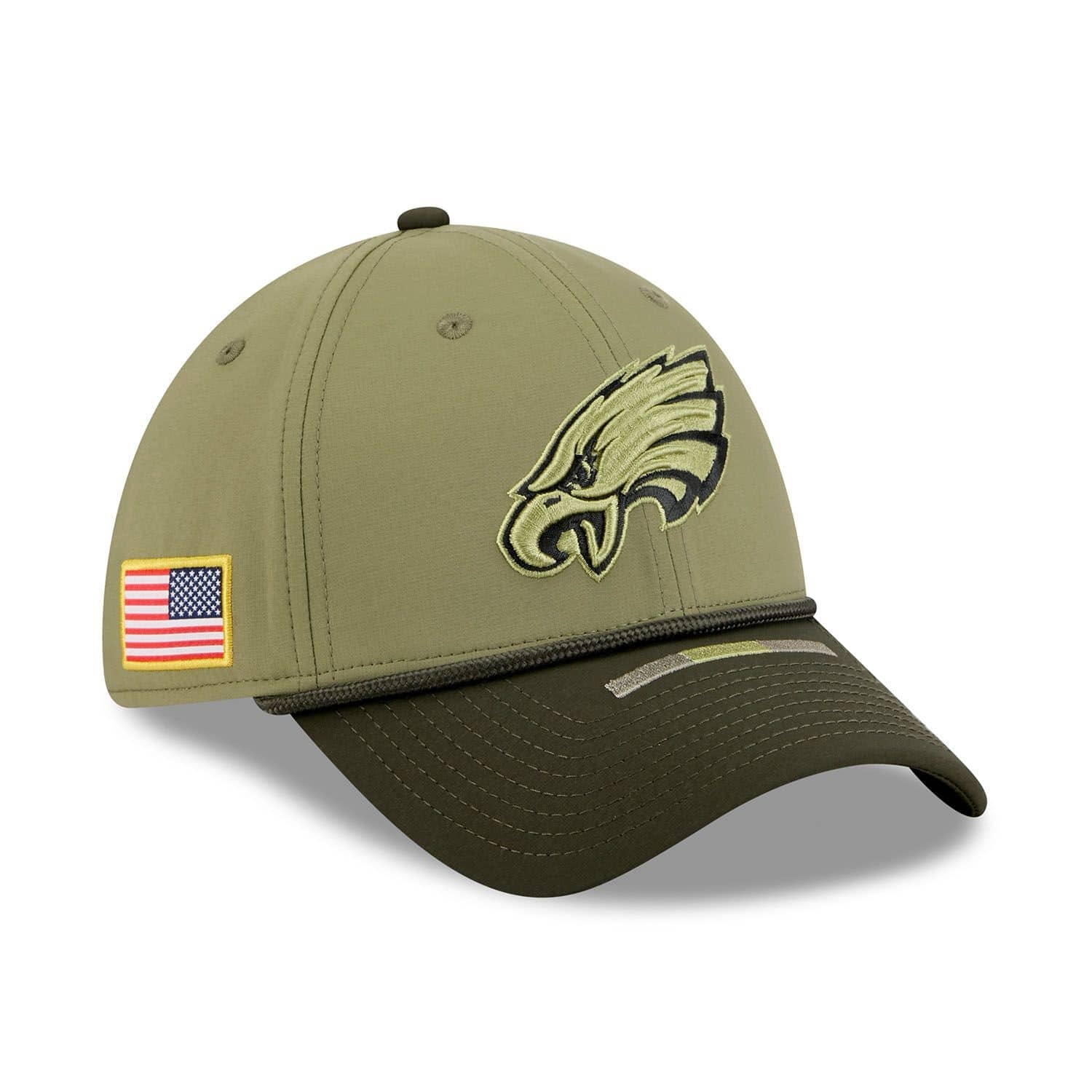 New Era American Football Cap von deinen Philadelphia Eagles im Stretch-Fit 39THIRTY Style aus der offiziellen On-Field 2025 NFL Salute to Service Kollektion.