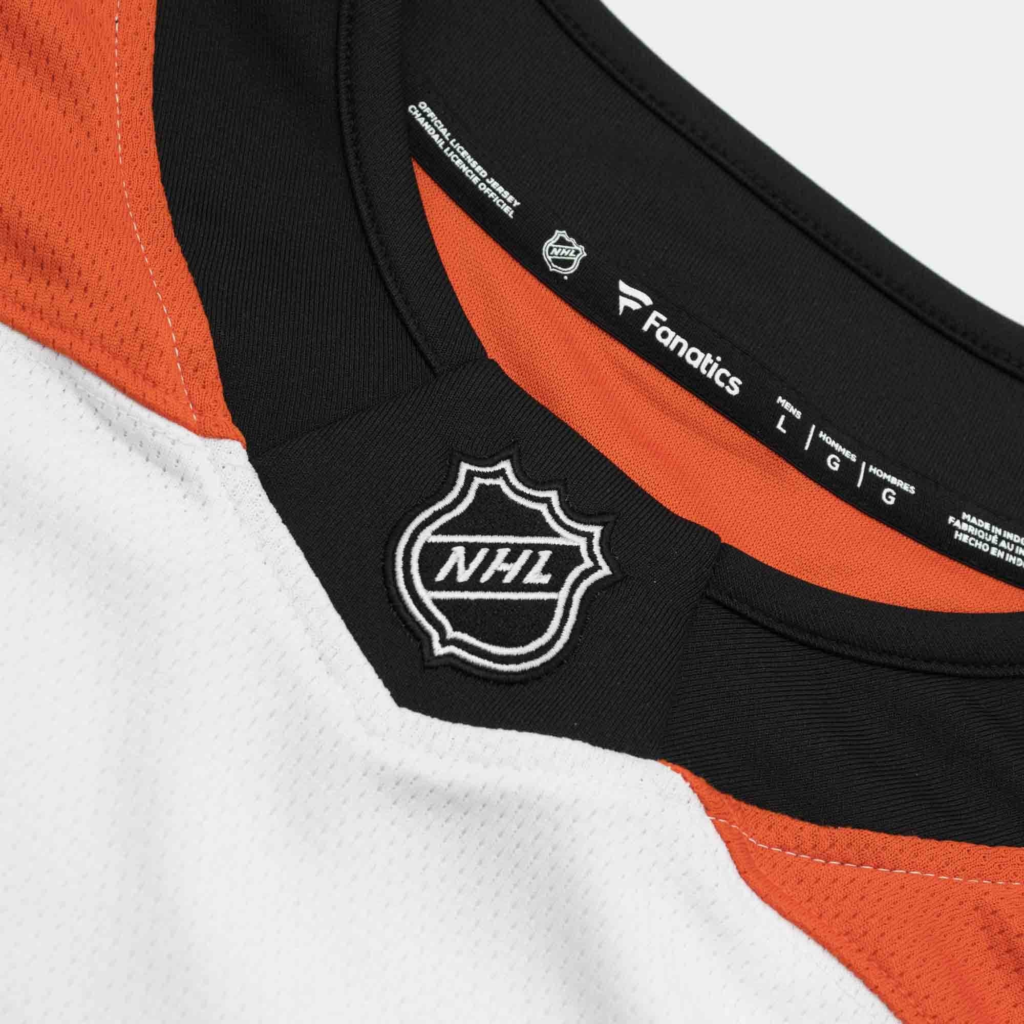 Fanatics NHL Herren Eishockey Trikot von deinen Philadelphia Flyers im weißen Breakaway Road Style.