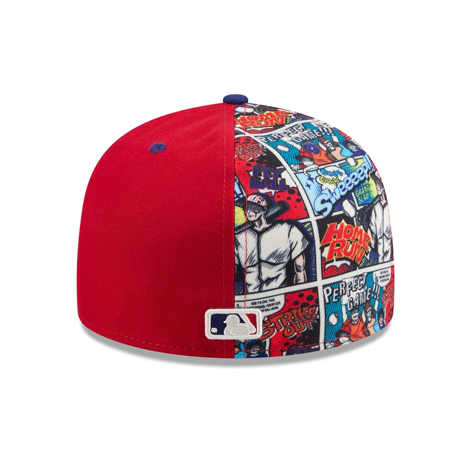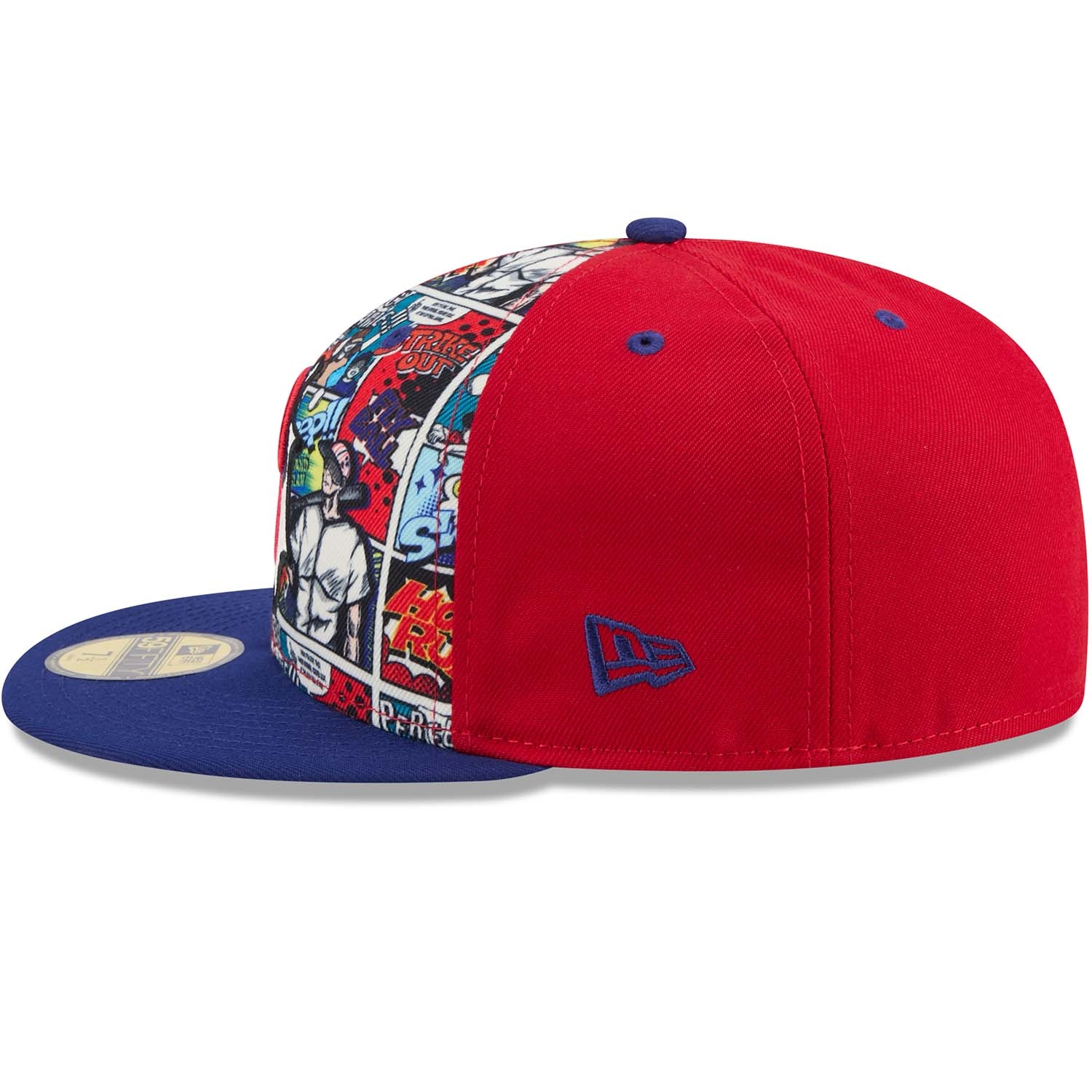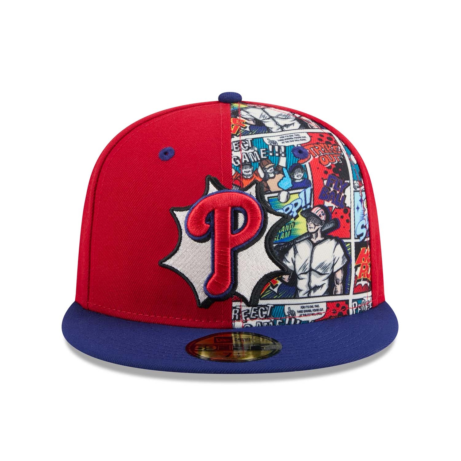 - Philadelphia Phillies Logo in 3D-Stick auf der Front - platziert auf einem kontrastreichen Allover-Comic-Print im Stil klassischer Graphic Novels.