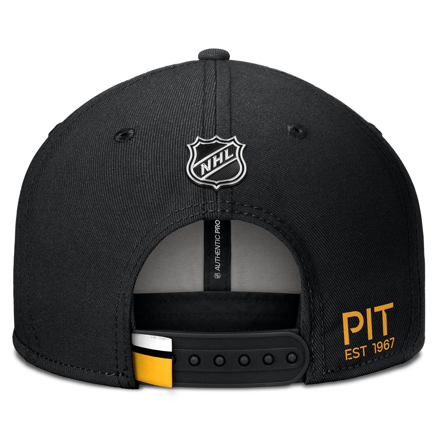 Fanatics Eishockey Adjustable Snapback Cap von deinen Pittsburgh Penguins aus der offiziellen 2024/25 NHL Authentic Pro Collection.