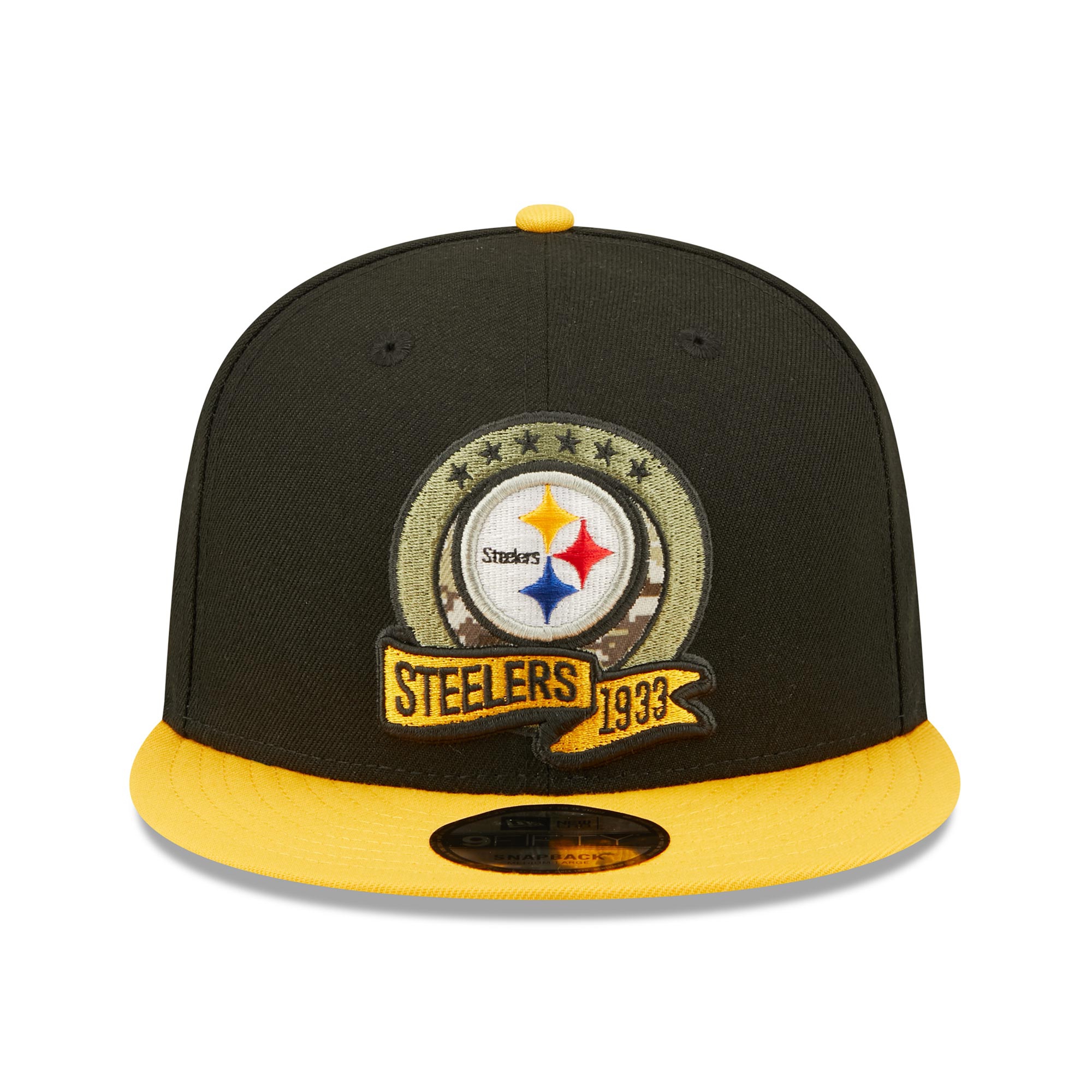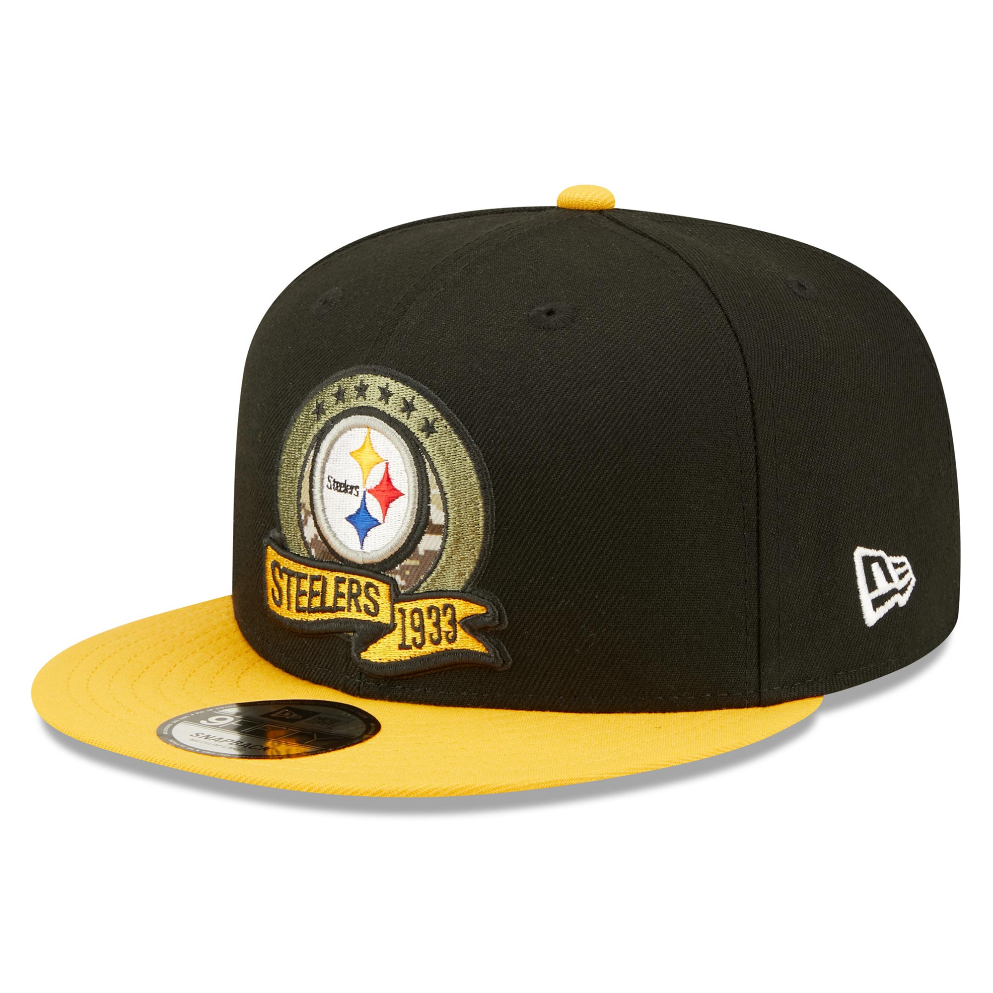 New Era American Football Snapback Cap mit dem Logo deiner Pittsburgh Steelers im 9FIFTY Style aus der offiziellen 2022 NFL Salute to Service Sideline Kollektion.