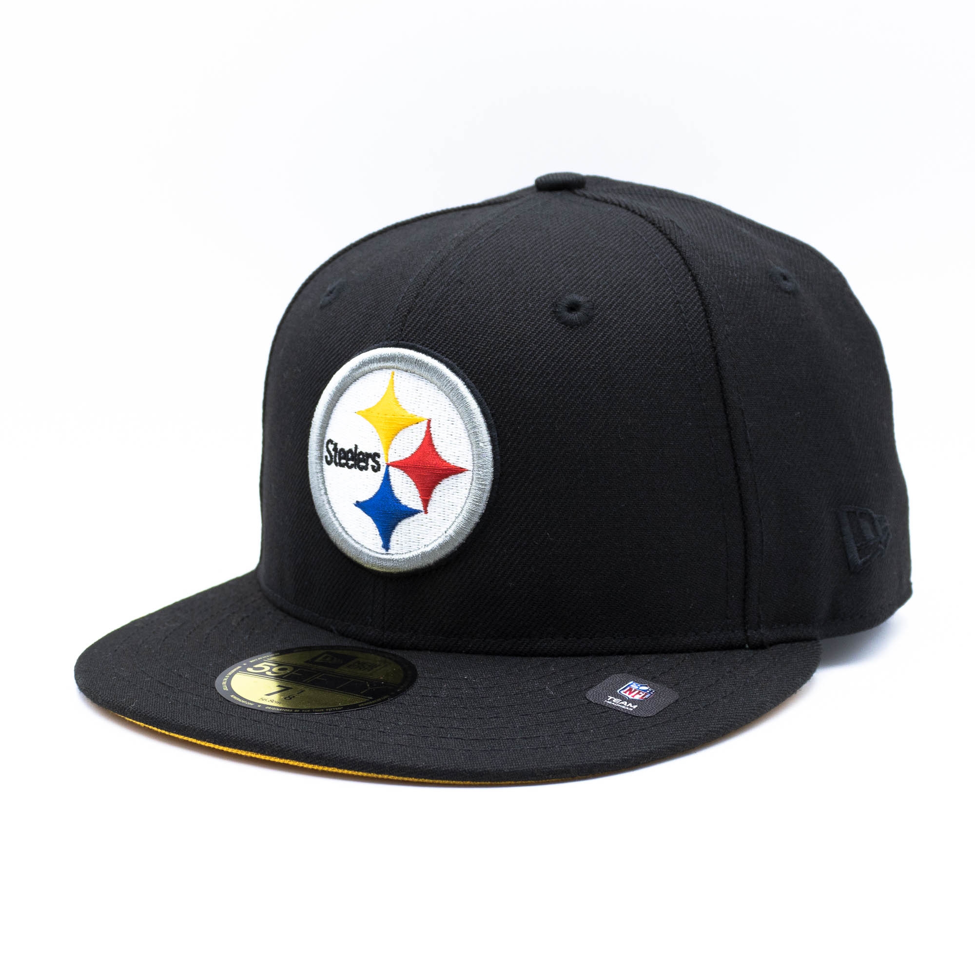 Einmalige Football Cap aus der TAASS.com Exclusives Collection produziert in Premium-Qualität von New Era. Auf der Vorderseite ist das Pittsburgh Steelers Teamlogo im 3D-Design aufgestickt. Die Rückseite ist mit dem teamfarbenen NFL-Shieldlogo bestickt. Als besonderes Extra ist der Super Bowl XLIII Patch auf der rechten Capseite aufgestickt. Die Cap überzeugt im komplett schwarzen Look und ist ein Must-Have für jeden Steelers-Fan. Die Schirmunterseite ist gelb.